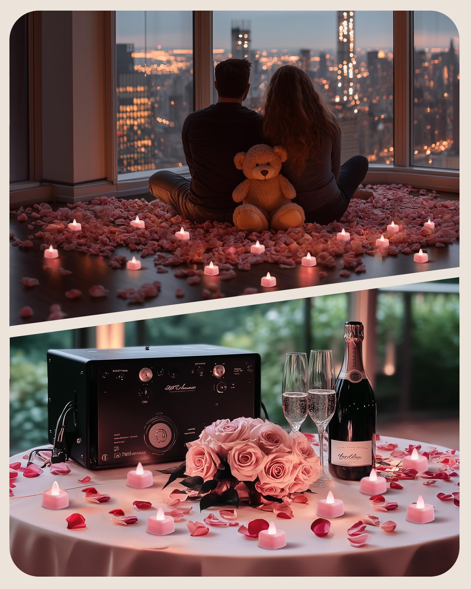 Create a Romantic Atmosphere: Elevate your special evenings with our unique tea lights featuring 12 heart-shaped LED battery tea candles and 1000 perfectly crafted artificial rose petals – the ultimate surprise for your loved one