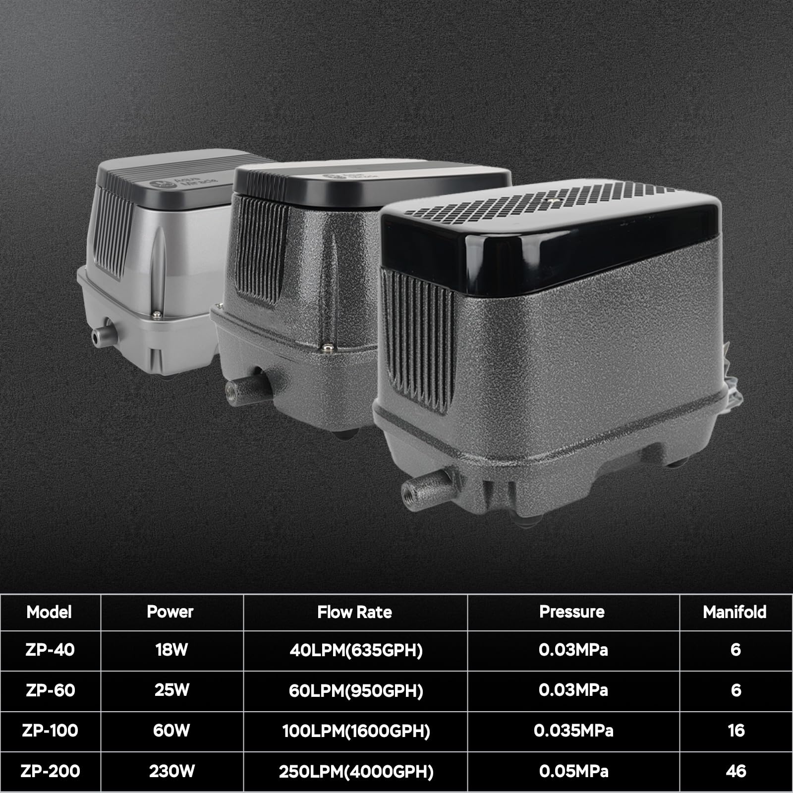 SPECIFICATION - This linear air pump delivers a max of 950GPH powerful airflow at 0.03MPa pressure with an 25W energy-efficient copper coil motor that runs in stable operation and lasts longer. Perfect as a pond aerator, septic aerator, hydroponic air pump, or aquarium air pump, it provides high efficiency, low heat and low power consumption.
