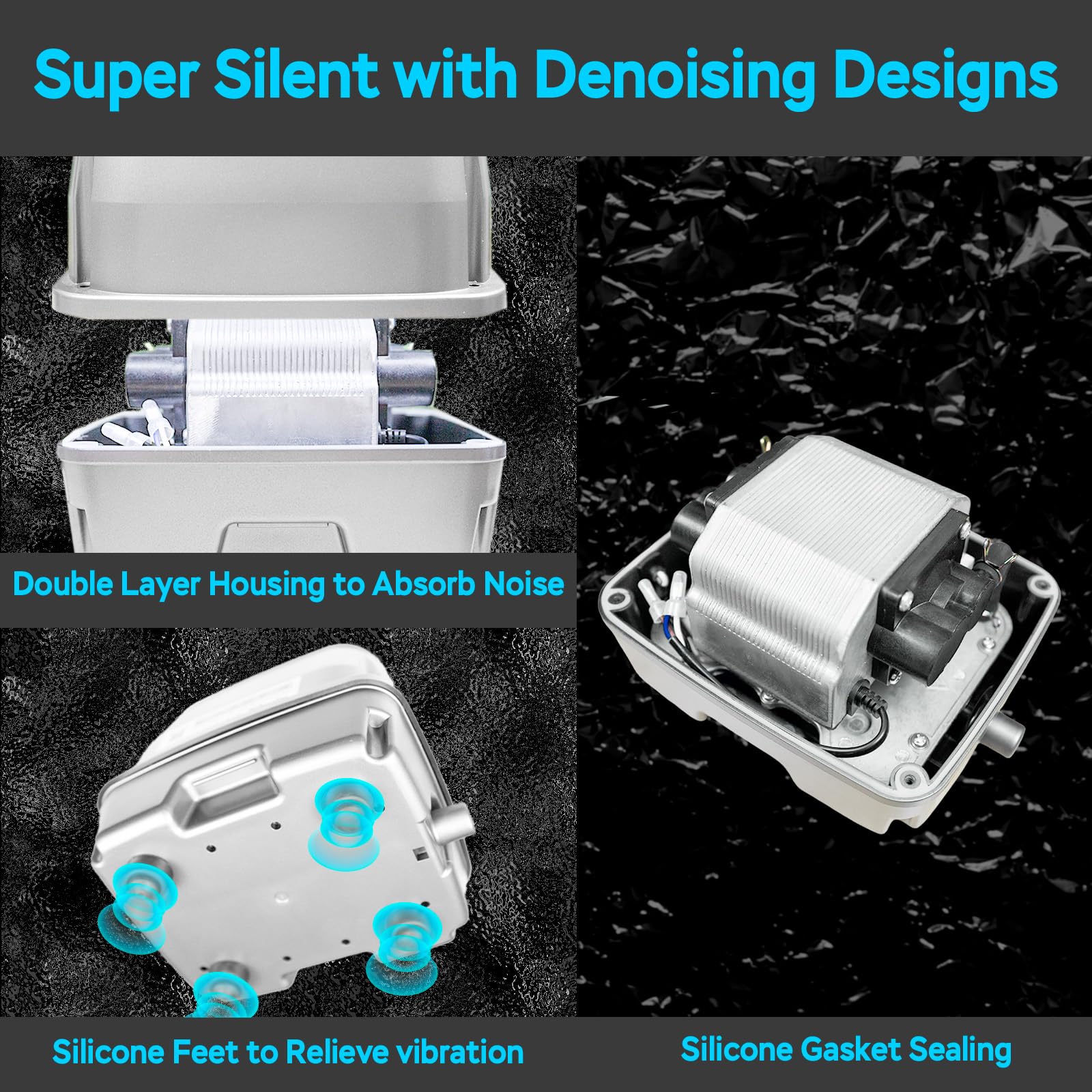 QUIET OPERATION - Enjoy super quiet operation with our multi-layer noise control: Silicone vibration buffers, Precision-sealed air chamber, Double-walled housing. Ideal for noise-sensitive areas.