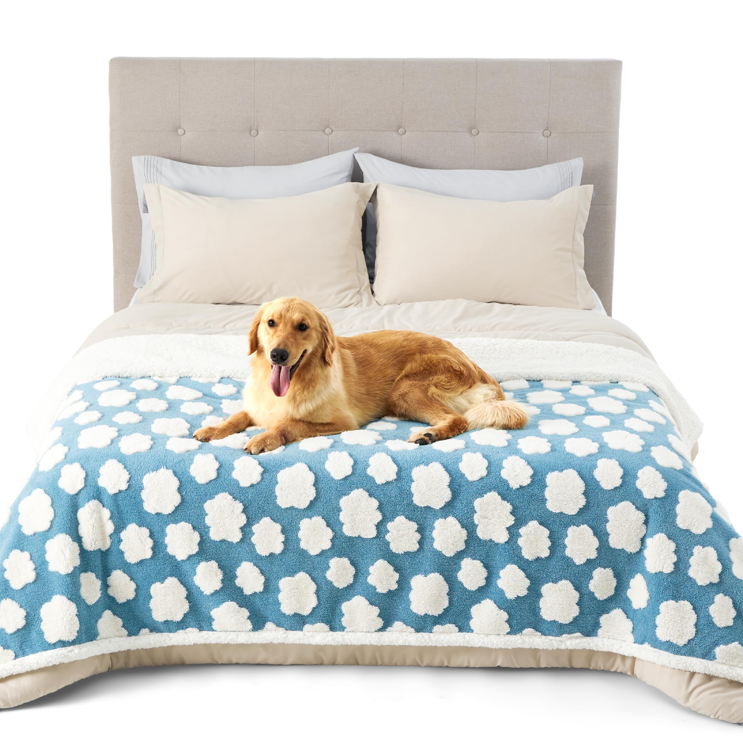 Cuddle-Ready Comfort: One up your snuggle game with Lesure's waterproof blanket! The feel of soothing Sherpa on one side and an extra plush Jacquard shag on the flip side promises your furry friend's ultimate warmth and coziness. Light as a feather, this blanket shields your beloved pets from the chill and damp, keeping them toasty and comfy