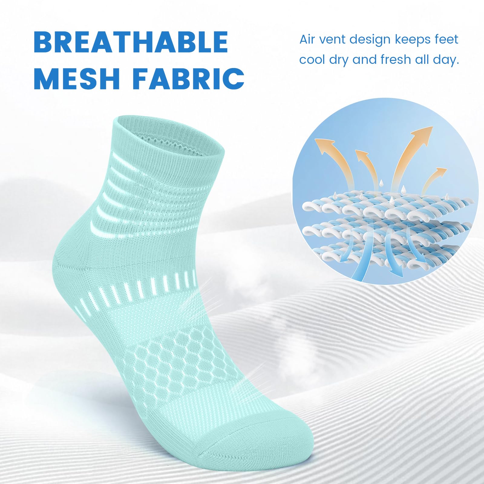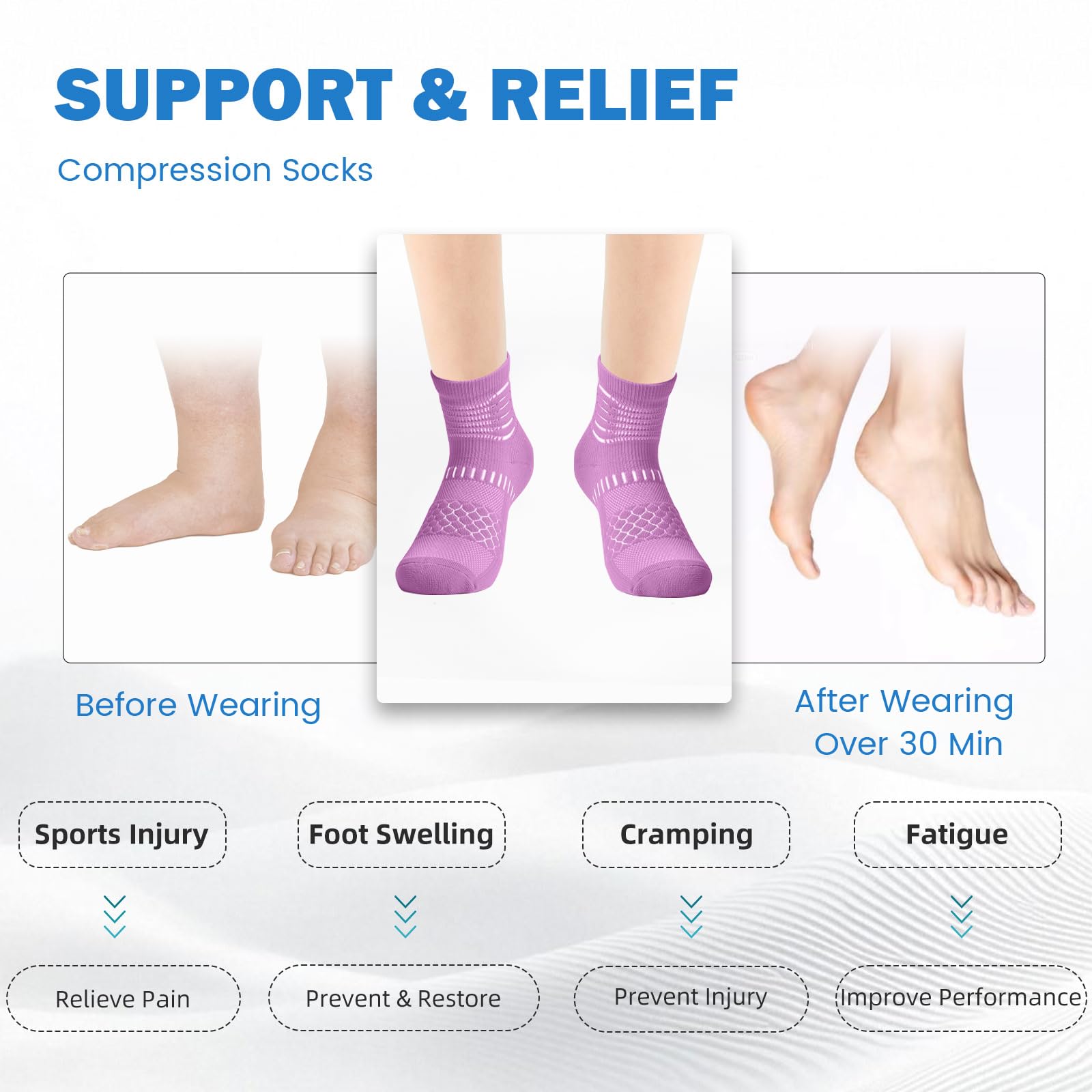 Breathable & Fast-Drying Comfort – Our compression socks are designed with premium quick-drying fabric and breathable mesh panels across the instep to enhance airflow and speed up moisture evaporation. Perfect for running, hiking, workouts or everyday wear,keeping your feet comfortably dry through any activity.