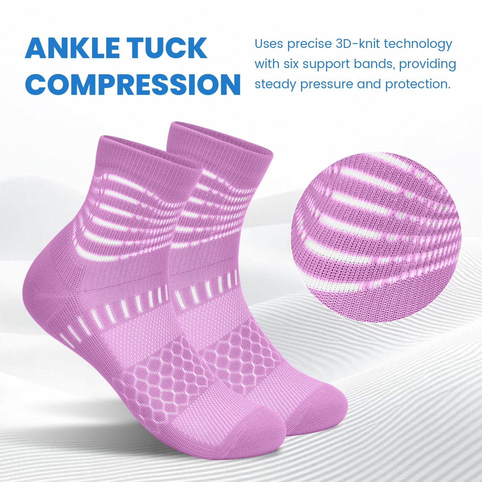 Stay Supported Stay Active – 6 ankle compression rings and reinforced arch support keeps you stable. Whether you're running working or recovering these socks help fight foot fatigue and plantar fasciitis pain.