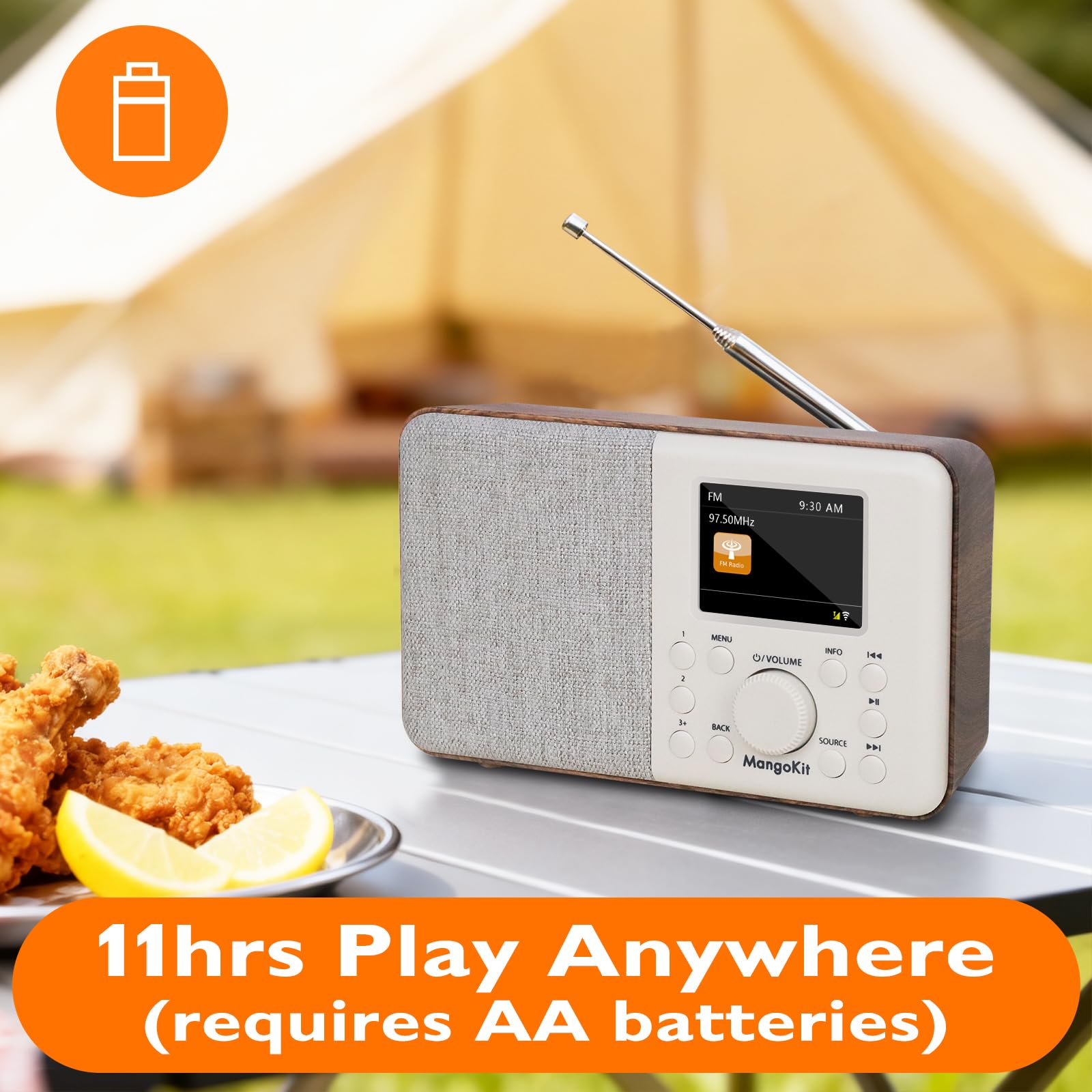 Mains or Battery Powered – Runs on included mains adapter for all-day listening or 4×AA batteries (not included) for portable use with up to 11 hours of playback. Compact and lightweight, perfect for carrying to the garden, patio or holiday home. Trusted DAB Radio for 15 years: Mangokit producing brilliant music systems since 2009, selling millions of devices across the world
