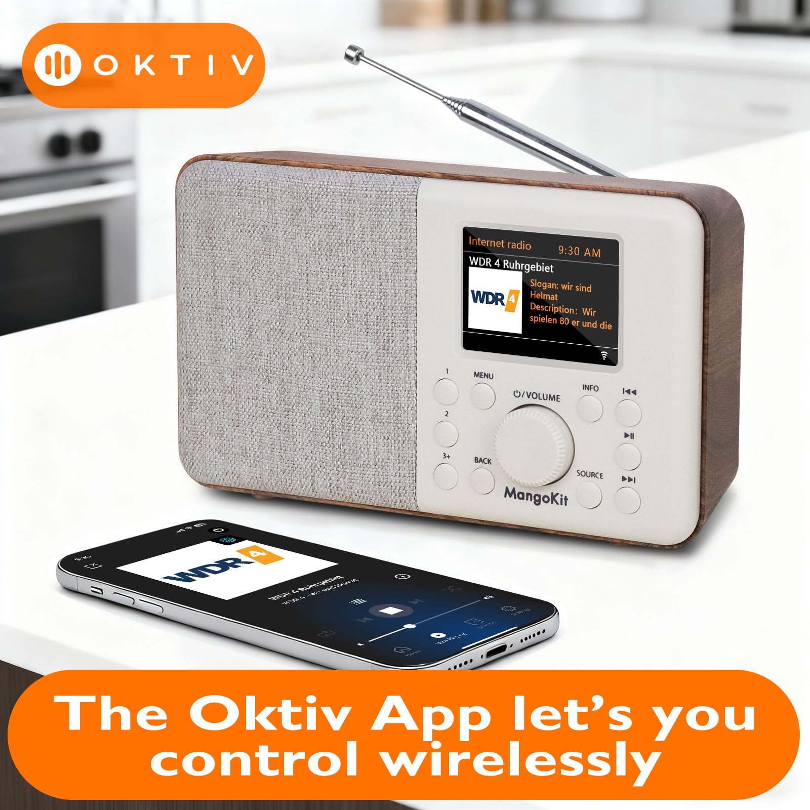Bluetooth Streaming, Podcast Player & OKTIV App – Stream music, podcasts and audiobooks directly from your smartphone or tablet via Bluetooth streaming. Use the built-in Podcast Player to catch up on your favourite shows with handy bookmark and follow functions. Control every feature wirelessly through the exclusive OKTIV App—switch modes, browse presets, access your music library and more.