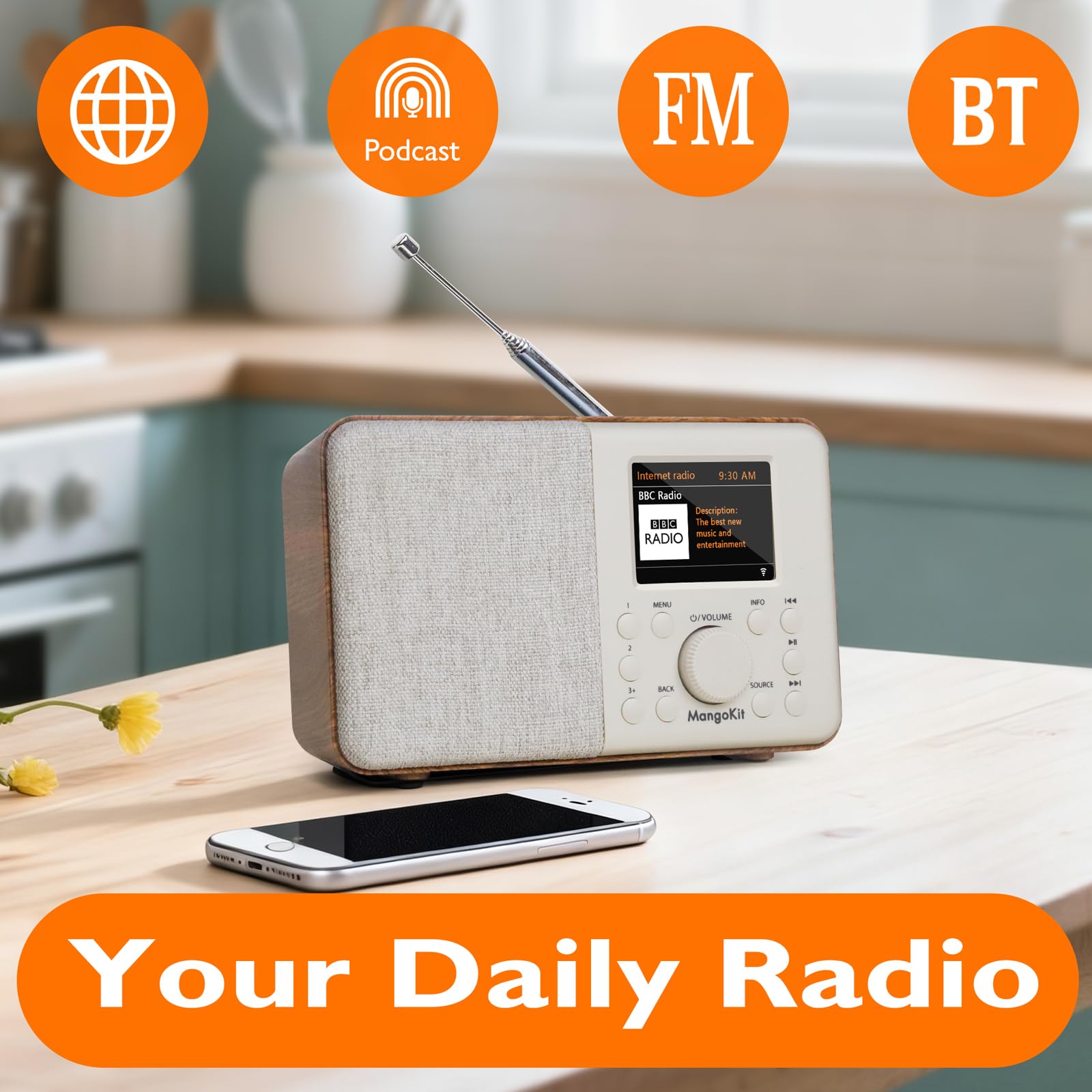 Internet Radio & Podcast & FM – Access local, national and global stations in crisp digital quality. Enjoy over 30,000 internet radio stations, crystal-clear Internet Radio & Podcast & FM stations for complete listening flexibility. Store up to 60 presets for instant access to favourites, whether it’s a kitchen breakfast show, bedroom talk radio, or relaxing music in the living room or garden.