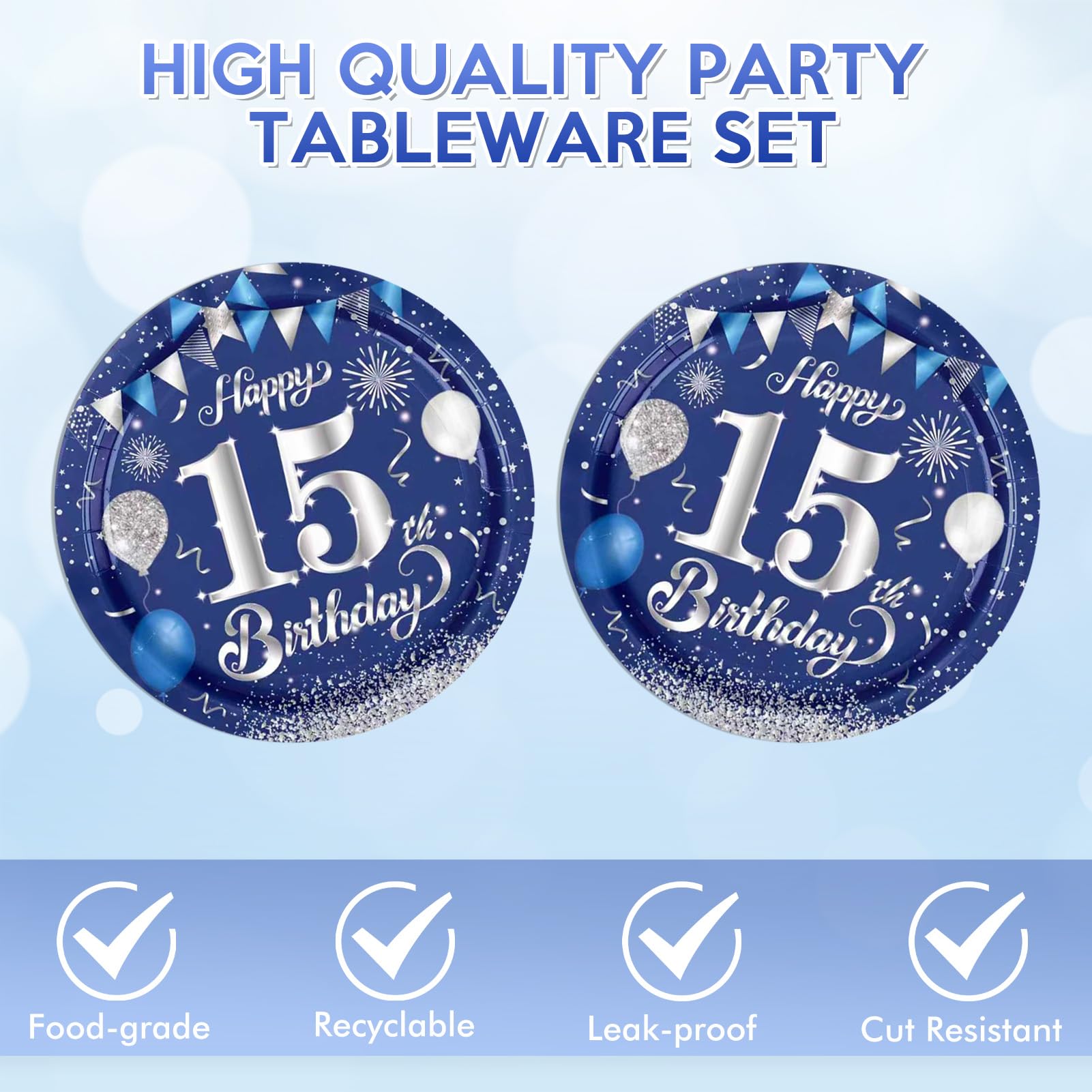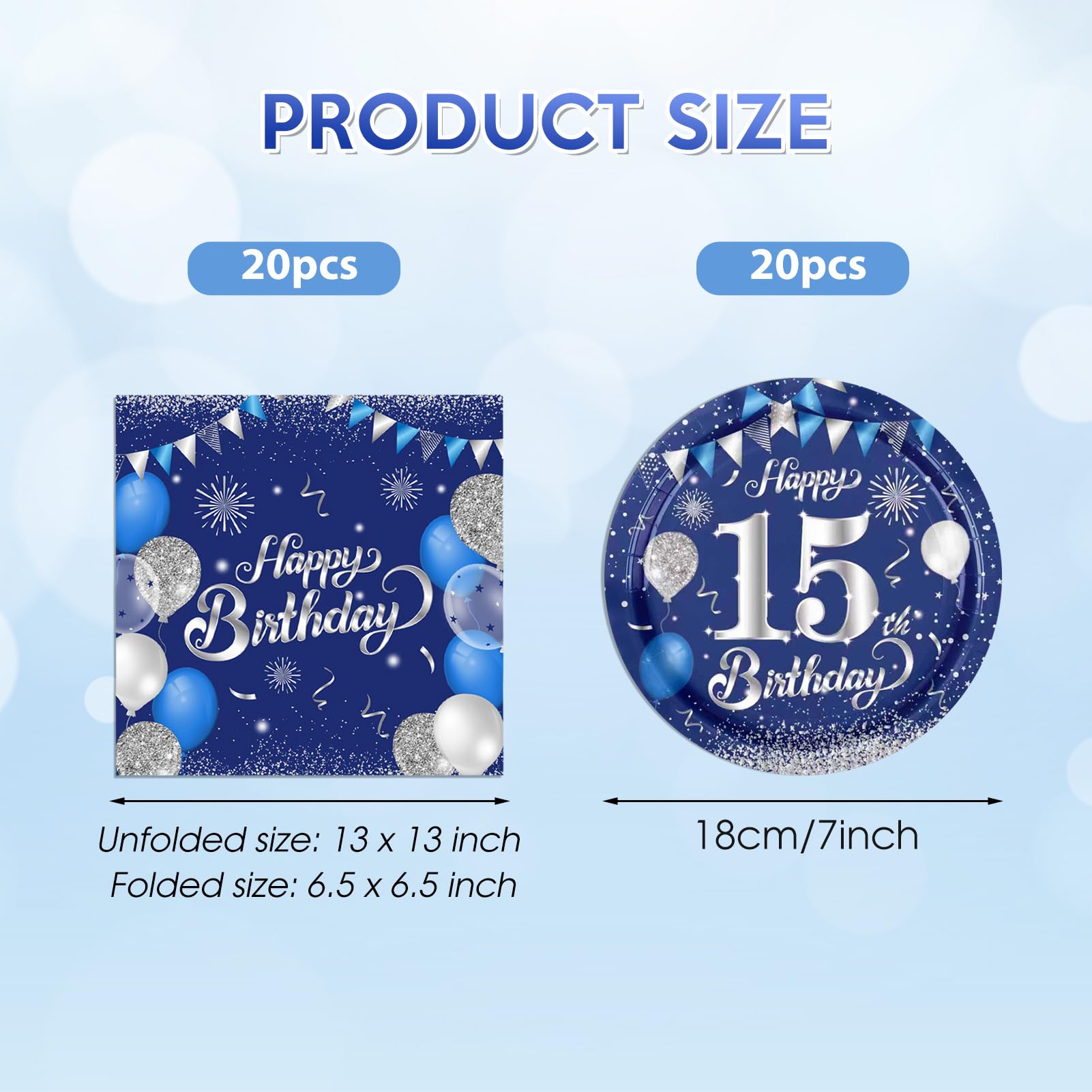 【Boys 15th Birthday Decorations Kit】Our 15th birthday decorations include 20 pieces 15th birthday plates, 20 pieces 15th birthday napkins. Perfectly highlighting your 15th birthday party theme will impress your guests,and happy 15th birthday decorations boy will be the perfect choice for your birthday party.