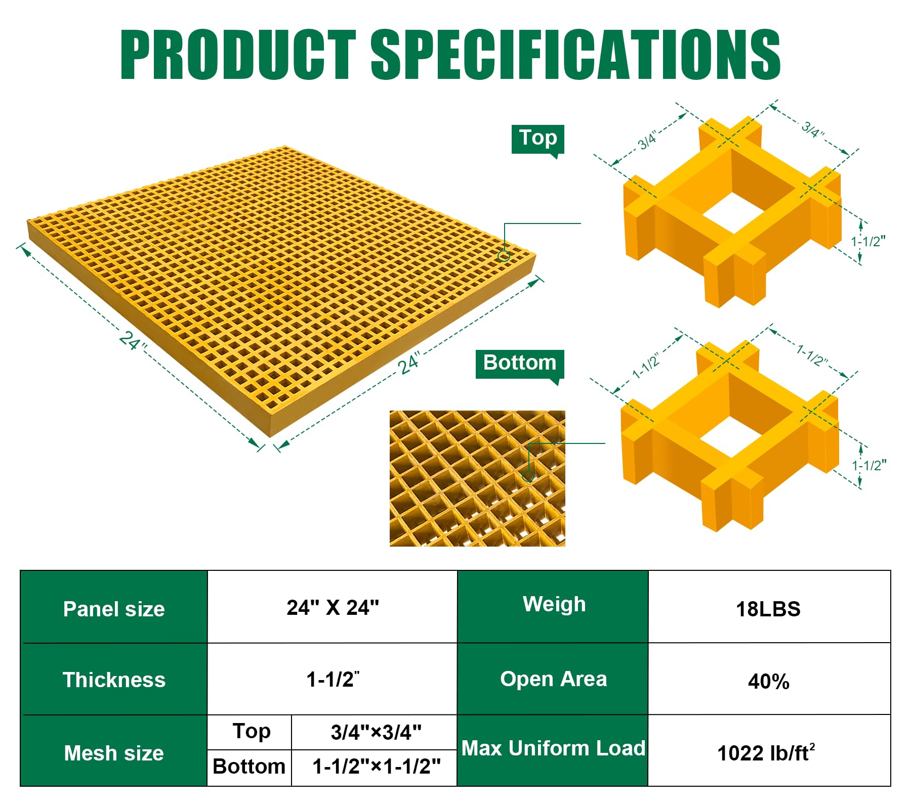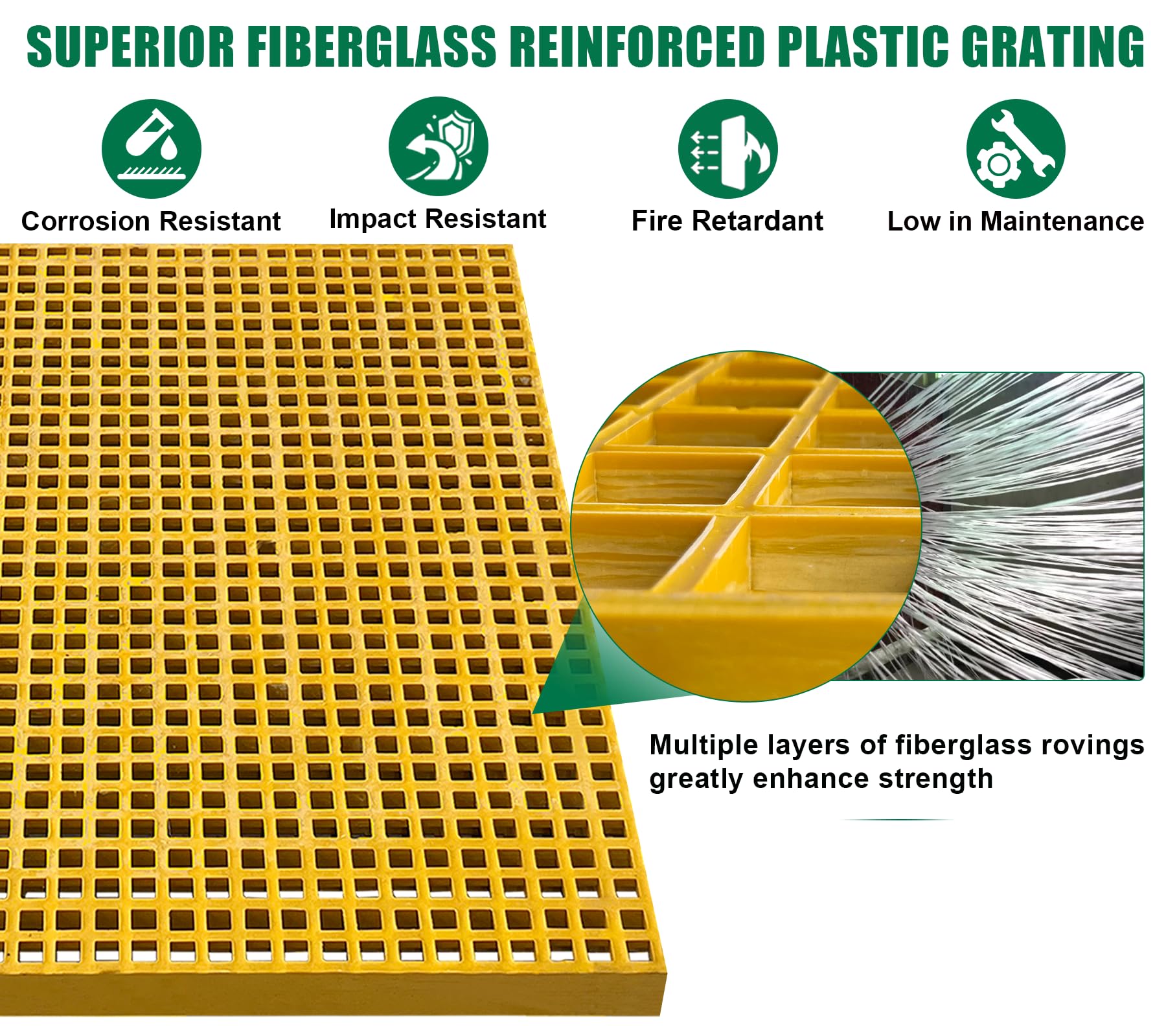 【Features of Superior Fiberglass】Upgrade your industrial spaces with Natotela molded fiberglass grating, delivering unparalleled durability, corrosion resistance, low maintenance needs and long service life