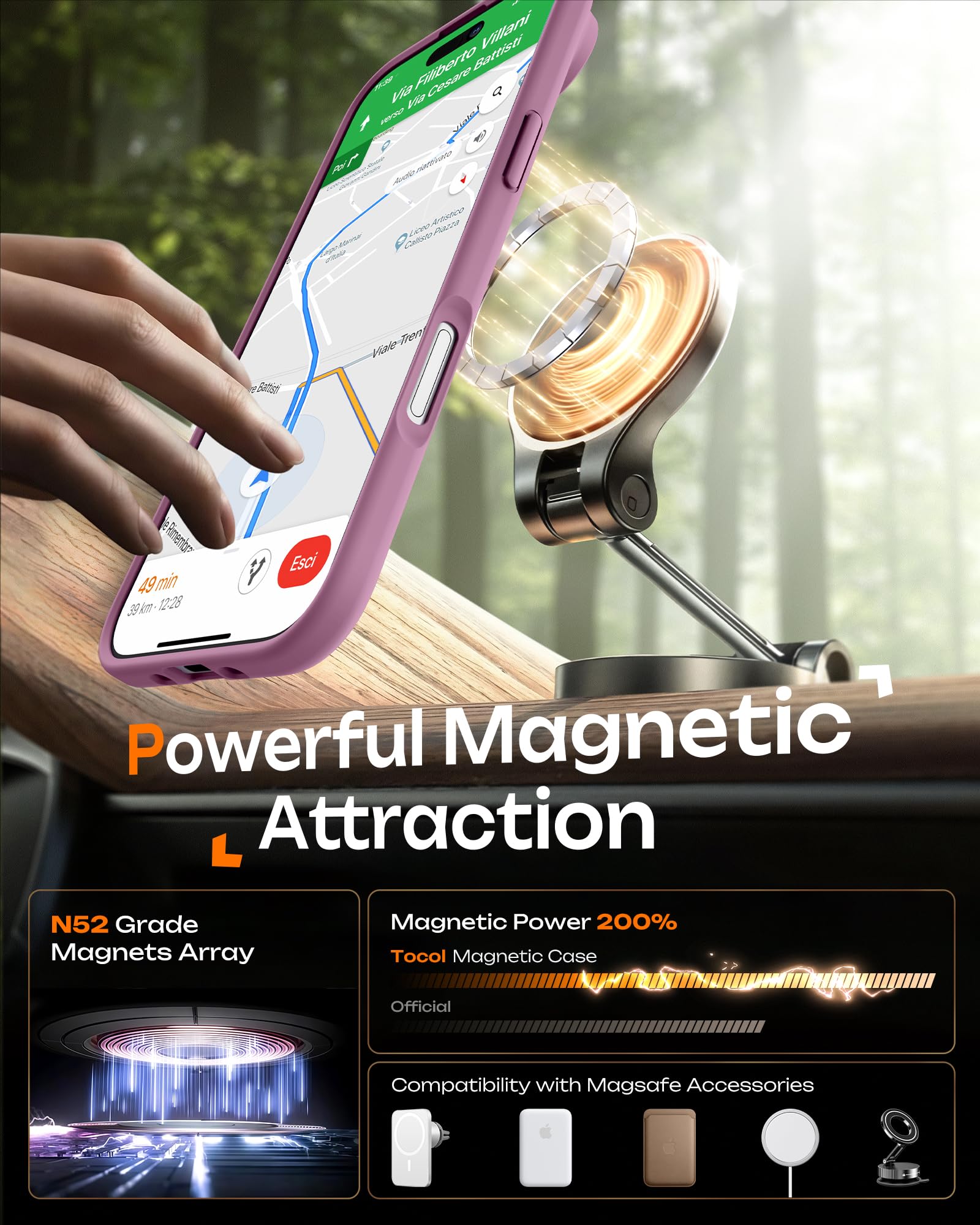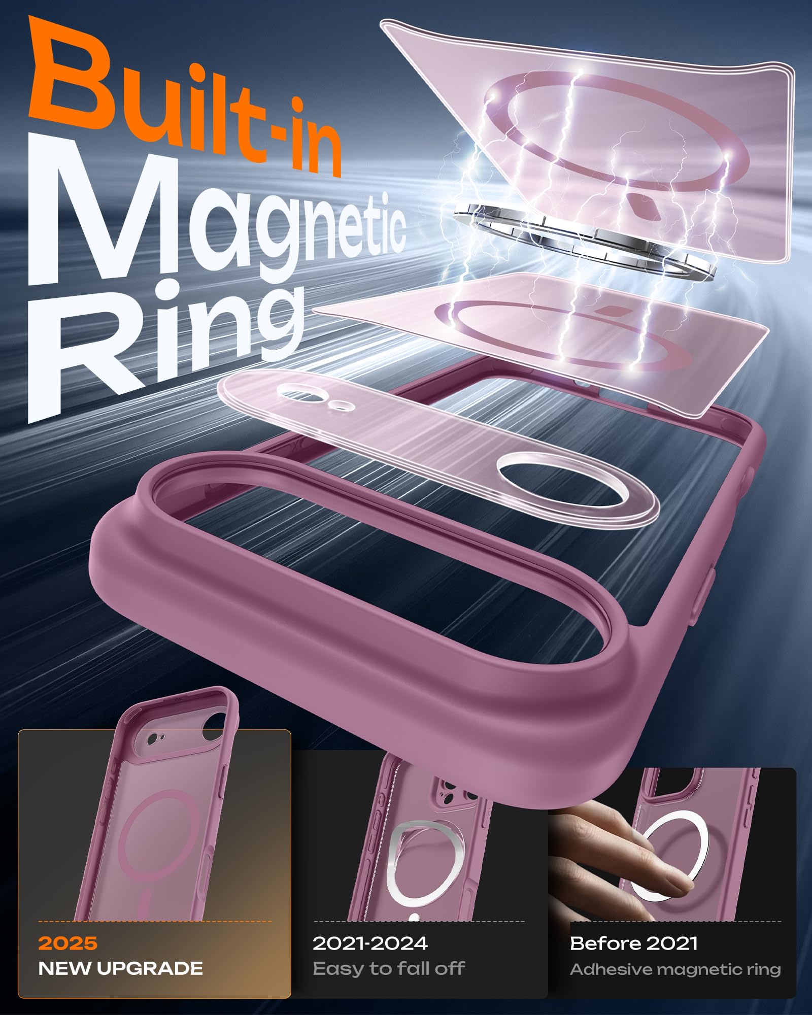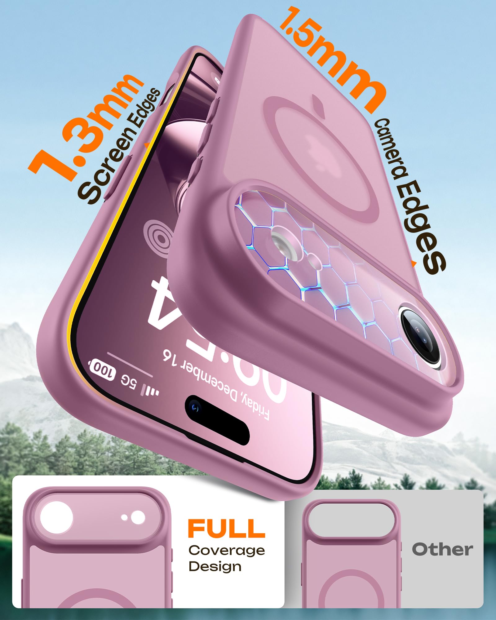 Embedded Magnetic Ring:Upgraded for iPhone 17 Air Magnetic Case. Built-in magnetic ring never falls off. 18N ultra-strong power, perfect for all your Mag accessories. It holds up well on your Mag car mount, even over strong bumps