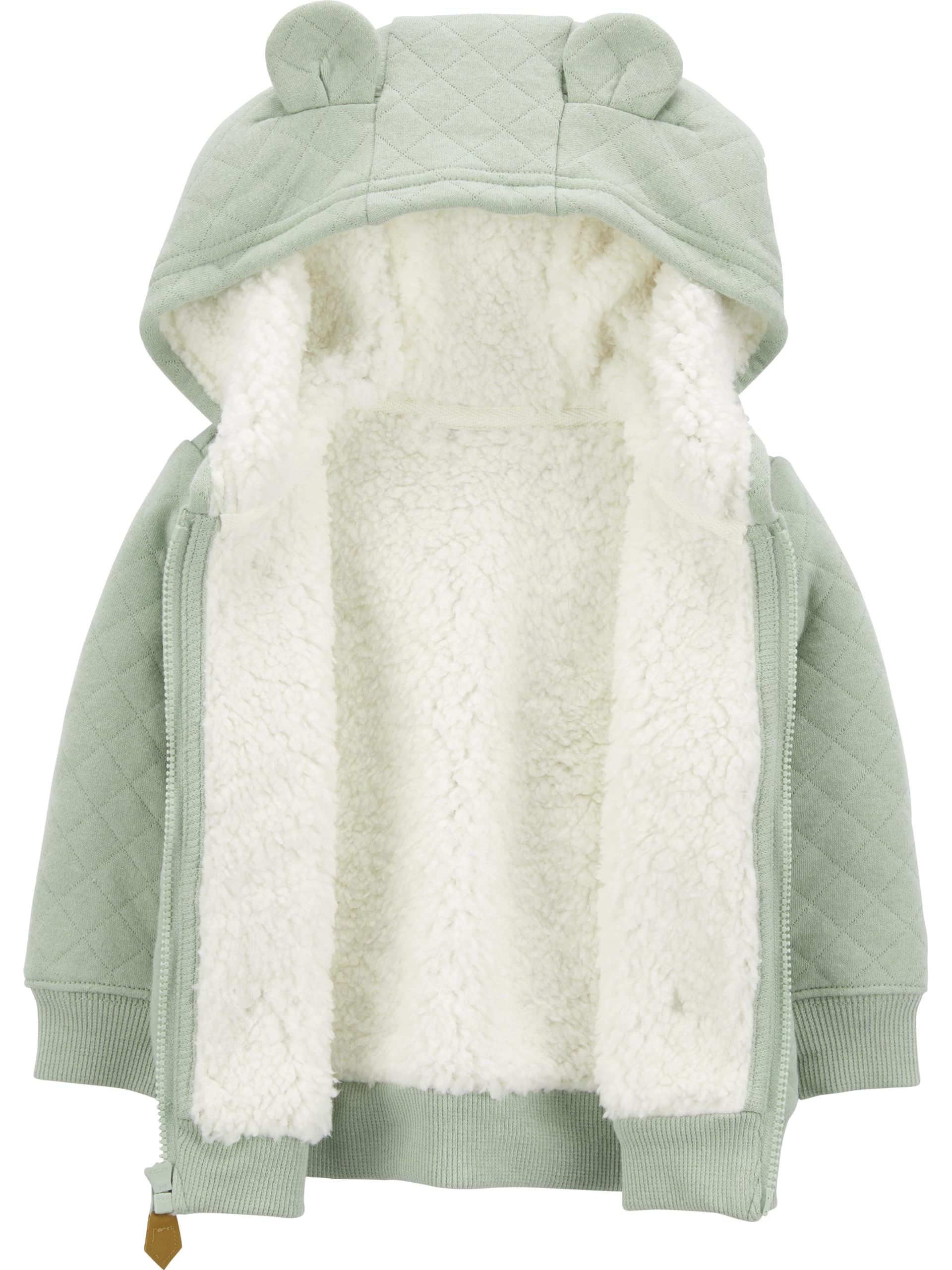 Description Keep your little one snug and stylish all winter long with Simple Joys by Carter's Baby Hooded Quilted Jacket with Sherpa Lining. This adorable jacket features a quilted cotton-blend shell paired with a super-soft sherpa lining, providing ultimate warmth and comfort during chilly outings. The attached hood, complete with cute bear ears, adds a playful touch that makes this jacket a standout piece in baby’s wardrobe. The full zip design allows for easy layering, while the long sleeves with ribbed stretchy cuffs ensure a cozy fit that keeps the cold out. Practical front pouch pockets offer extra warmth for tiny hands or a convenient spot to stash their favorite toys. Crafted from a durable cotton-polyester blend, this jacket is as functional as it is fashionable. OEKO-TEX Standard 100 certified, it’s free from harmful substances, making it safe for your baby’s delicate skin. Exclusively available on Amazon, this jacket offers the trusted quality of Carter’s at an exceptional value, making it the perfect choice for parents looking for both style and comfort for their little ones.