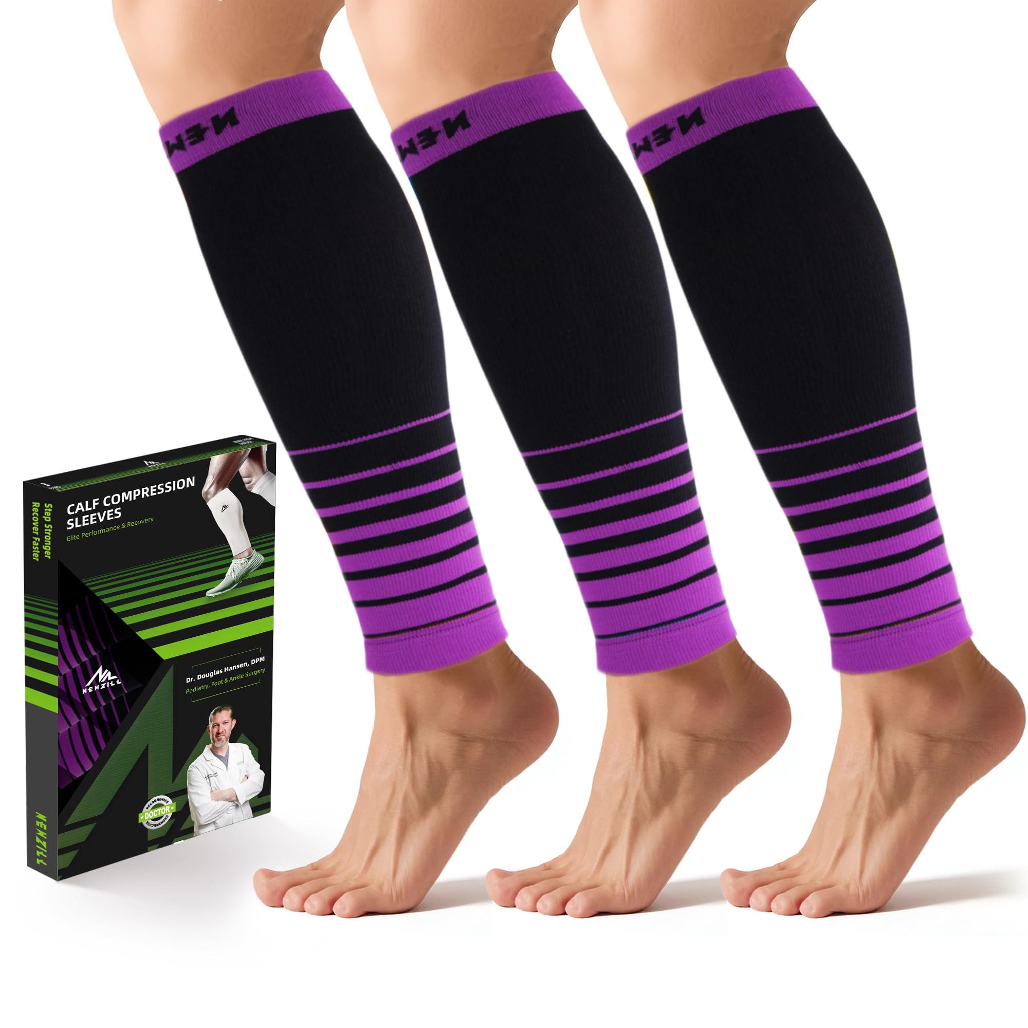 NEWZILL Compression Calf Sleeves (20-30mmHg) for Men & Women Perfect Option to Compression Socks for Running Travel Nursing (XXL Black/Purple 3Pairs)