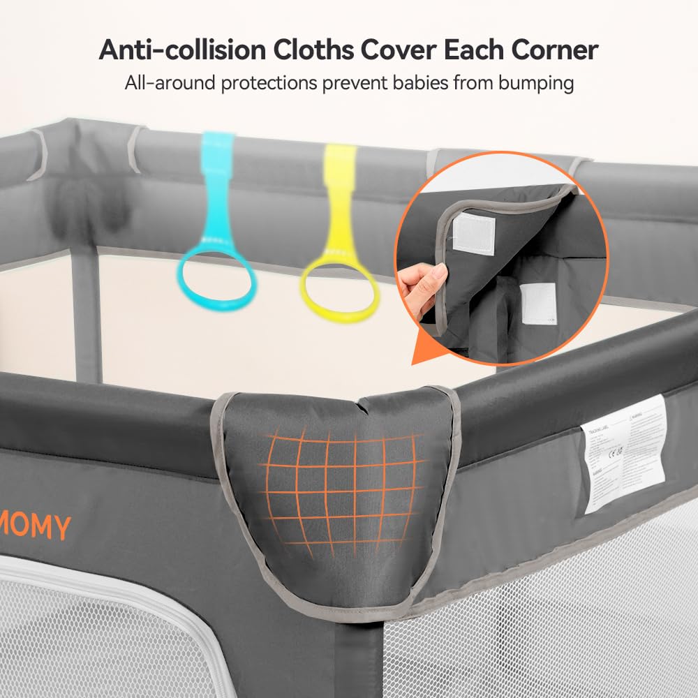 [Full Mesh Design]: The full-mesh design allows you to watch your baby's every move and prevent dangerous postures. Meanwhile, your baby can see your figure while playing, which makes the baby feel more secure. The internal zipper door keeps your baby from the risk of opening the door and lets you and your baby access and interact anytime