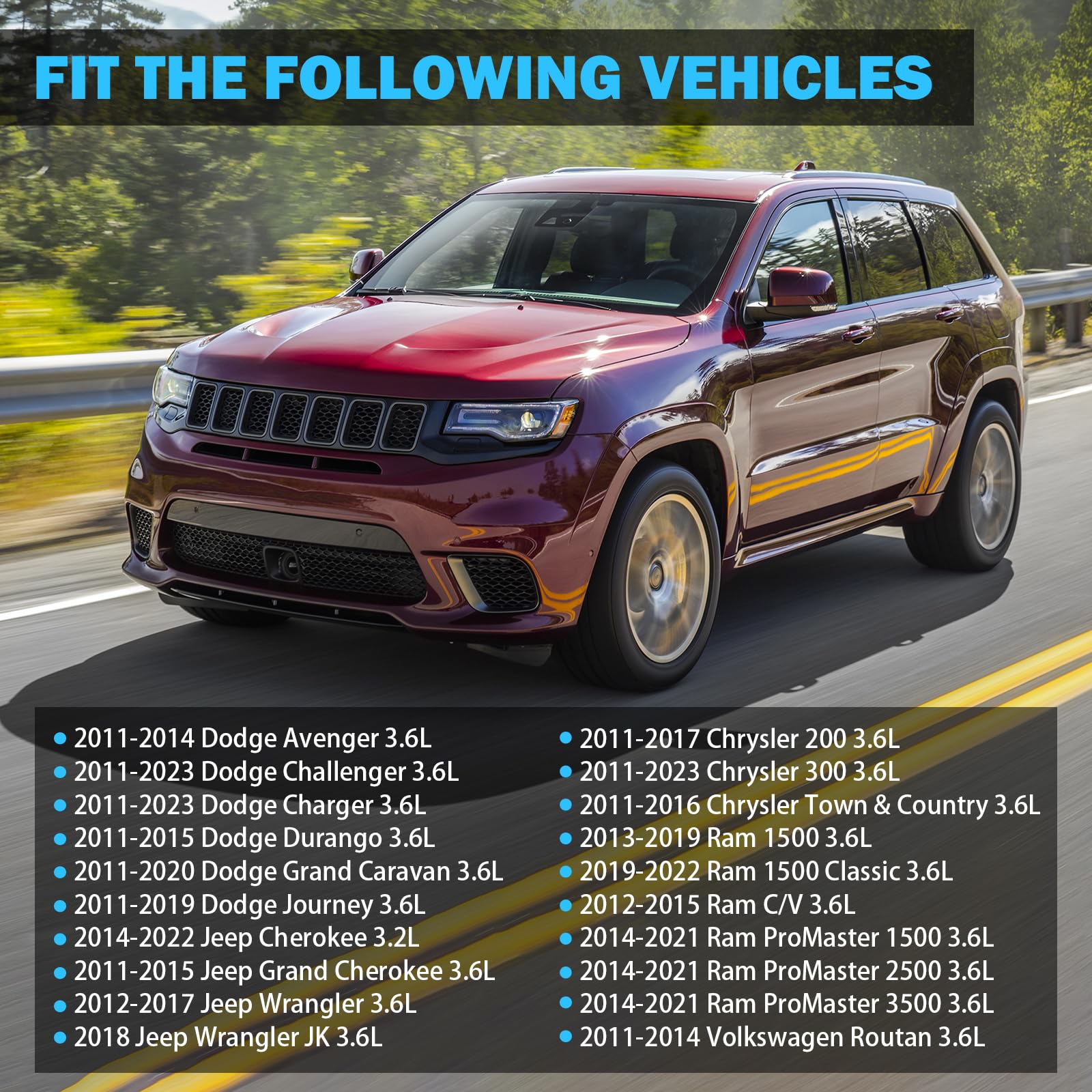 Compatible with 2011-2017 Chrysler 200 3.6L 2011-2020 Chrysler 300 3.6L 2011-2016 Chrysler Town & Country 3.6L 2011-2014 Dodge Avenger 3.6L 2011-2020 Dodge Challenger 3.6L 2011-2020 Dodge Charger 3.6L 2011-2015 Dodge Durango 3.6L 2011-2020 Dodge Grand Caravan 3.6L 2011-2019 Dodge Journey 3.6L 2014-2020 Jeep Cherokee 3.2L 2011-2015 Jeep Grand Cherokee 3.6L 2012-2017 Jeep Wrangler 3.6L 2018 Jeep Wrangler JK 3.6L 2013-2019 Ram 1500 3.6L 2019-2020 Ram 1500 Classic 3.6L 2012-2015 Ram C/V 3.6L 2014-2020 Ram ProMaster 1500 3.6L 2014-2020 Ram ProMaster 2500 3.6L 2014-2020 Ram ProMaster 3500 3.6L 2011-2014 Volkswagen Routan 3.6L