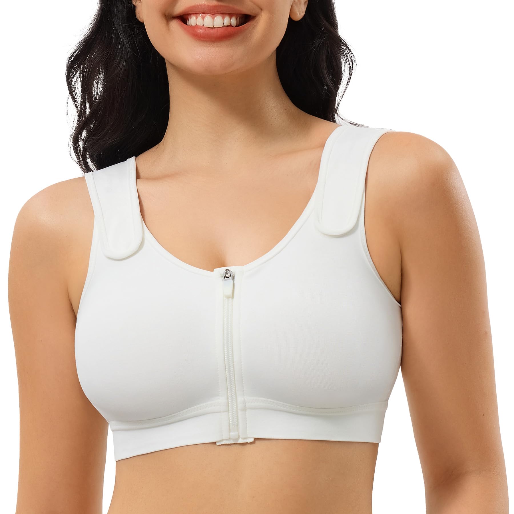 Front zipper closure-Easy to put on and take off with zipper front closure. Anti slide Zipper protect from sliding down when doing exercise. Protective layer of clothe covers the zipper on the inside to prevent scratching your skin