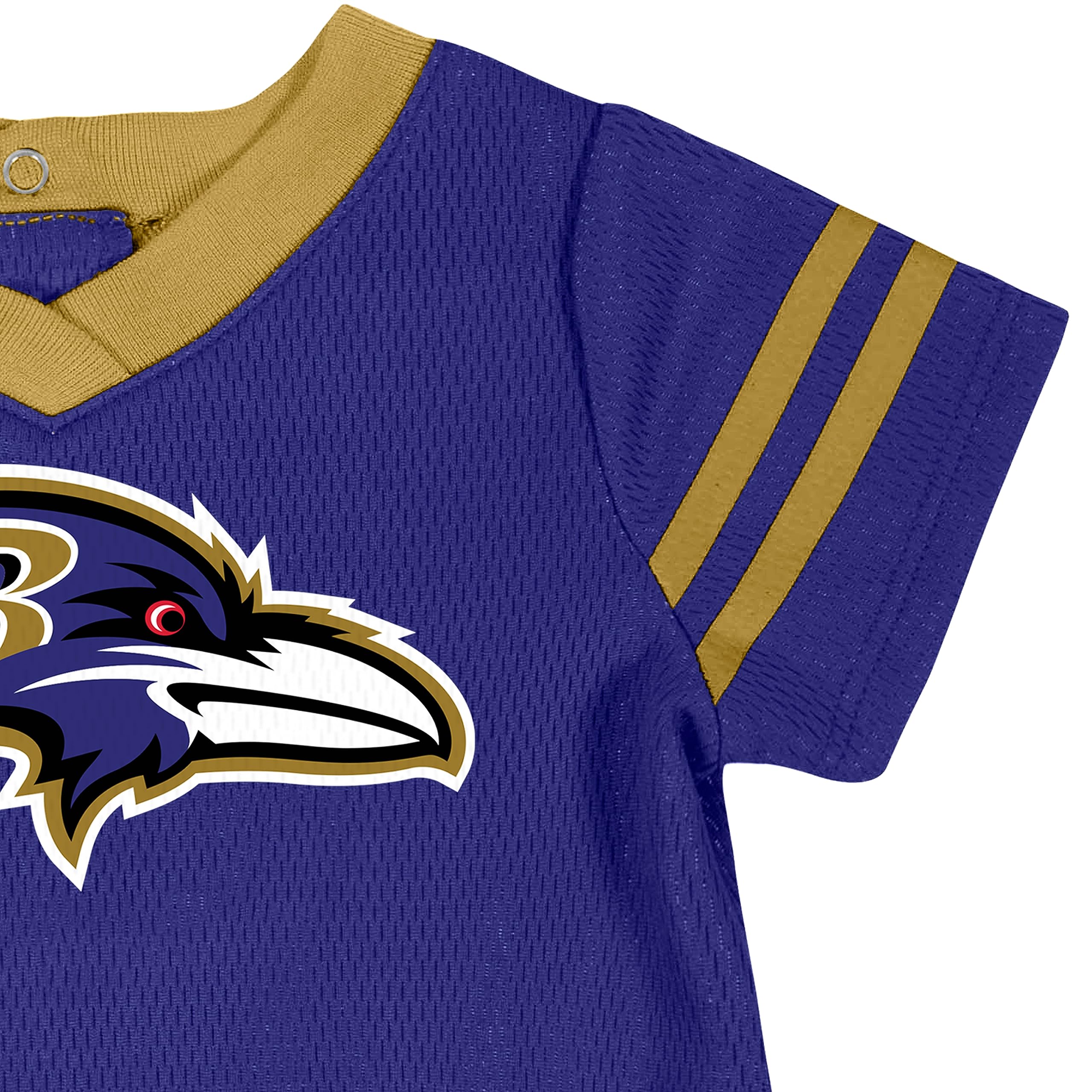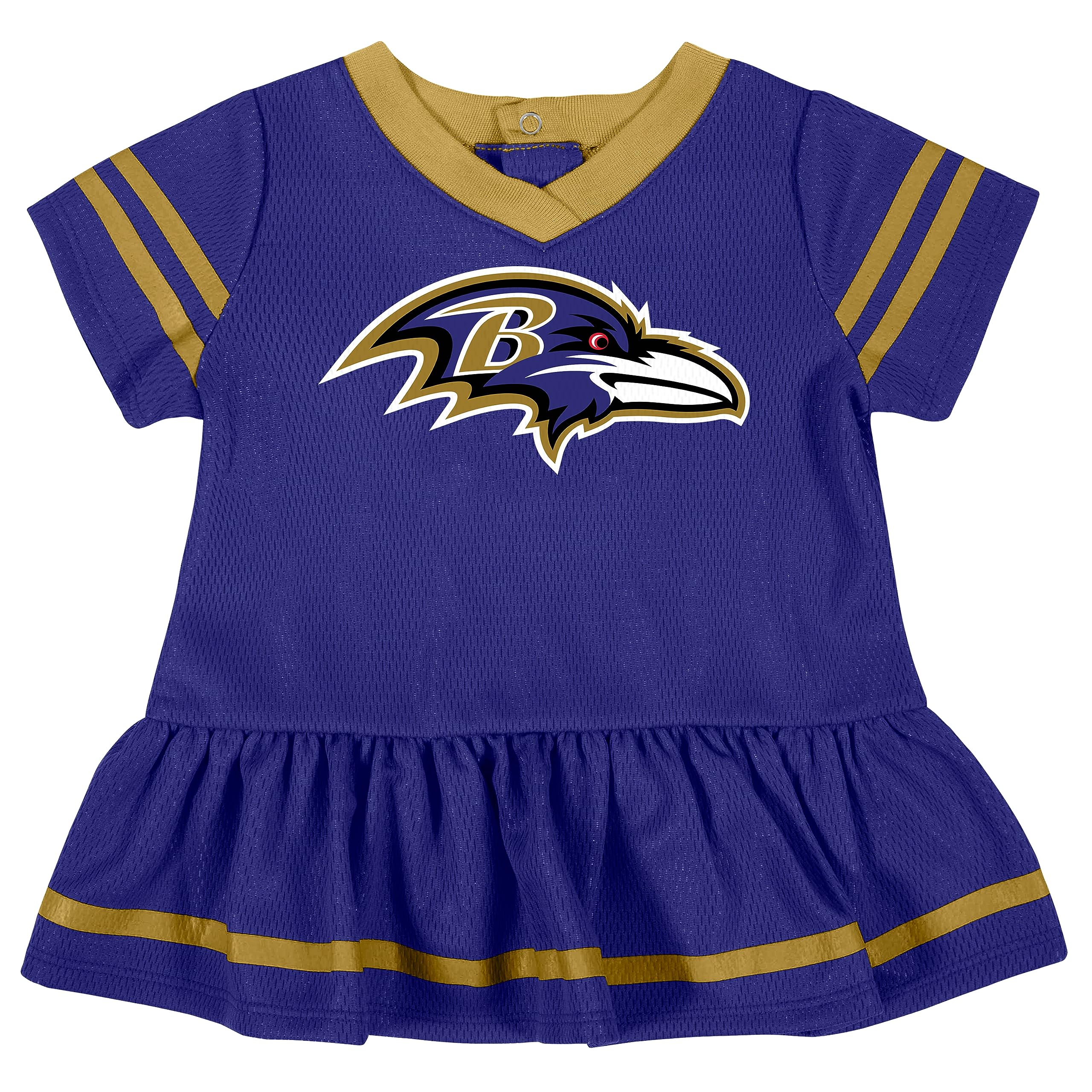 Description Don't leave any room for guessing which team your little girl pulls for on game day with this baby girls' dress and matching panty set! The 100% poly dazzle mesh and rib fabrics keep her comfortable on all of her adventures. The logo is proudly displayed on the front of the dress using big, bold screenprint artwork. Matching team colors help you create a look that's perfect for game day or any day you want to show your team pride! Just toss this outfit into the washer and dryer with the rest of the easy care items for quick and simple cleaning!