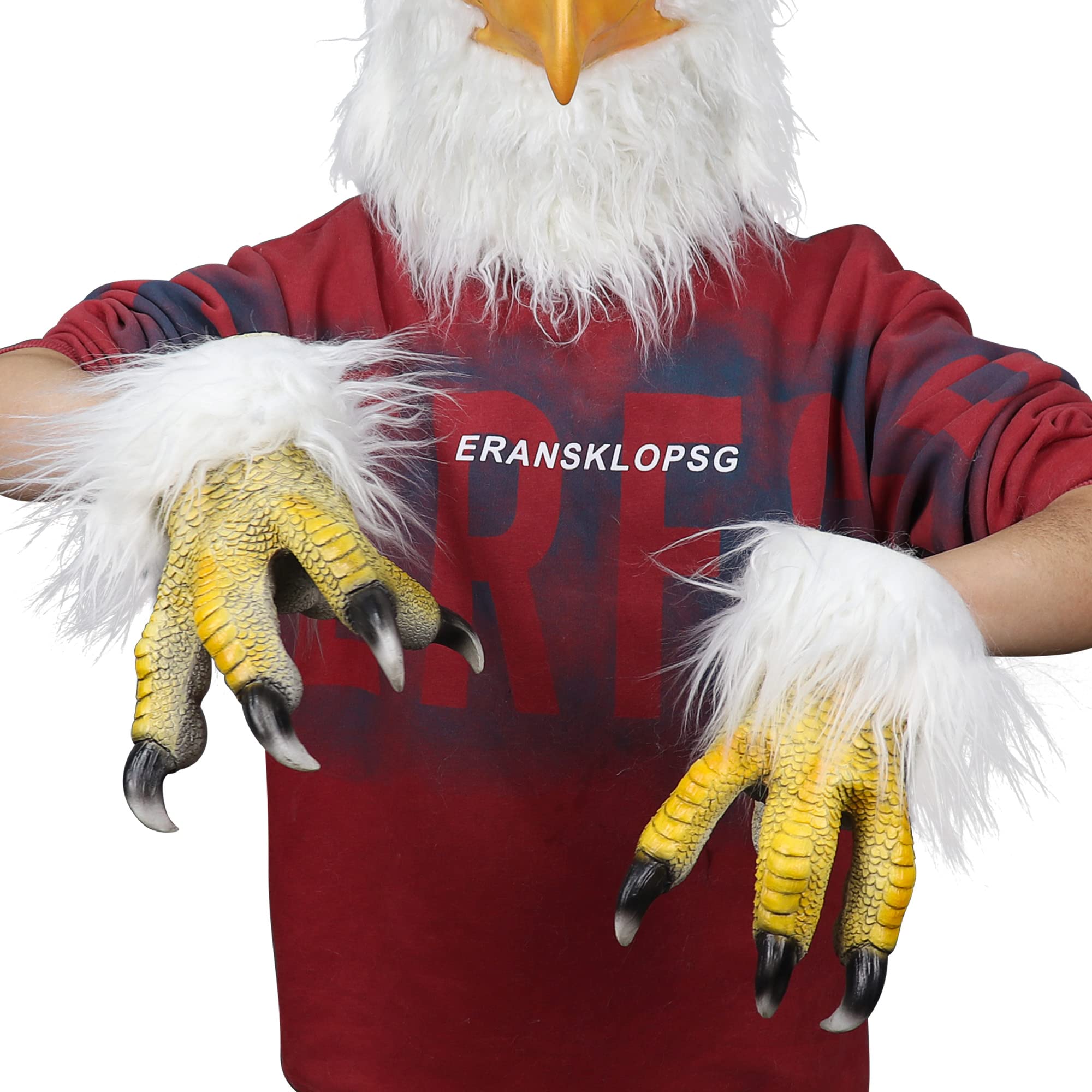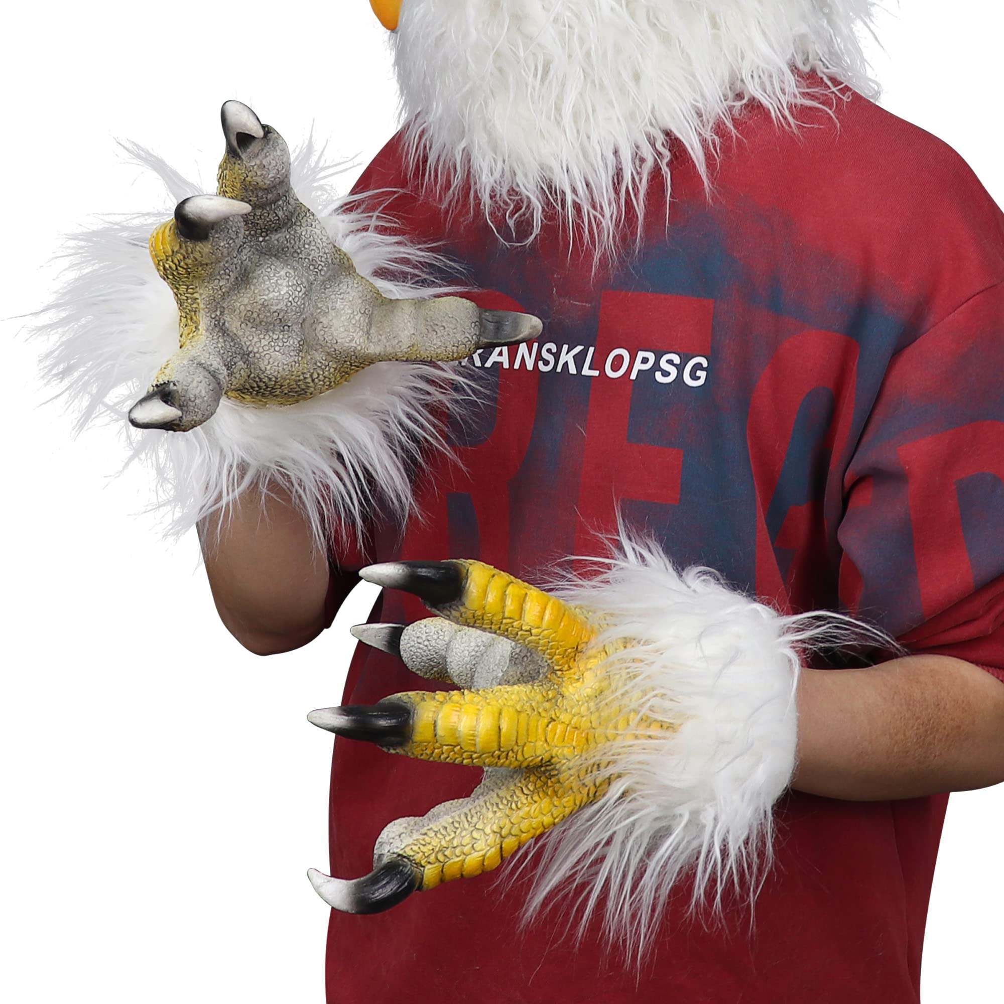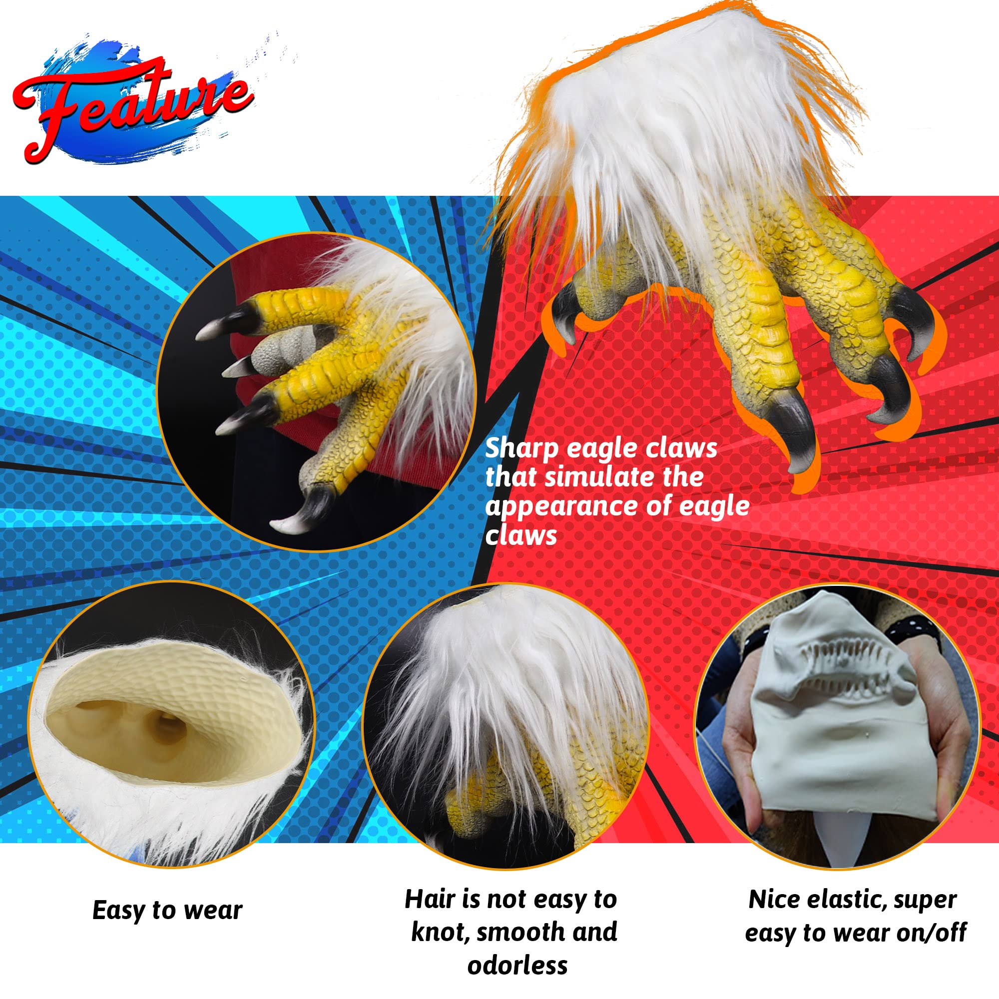 FEATURES: The eagle claws are made by imitating real bird feet, with four sharp fingers covered in white feathers, realistic and natural. You can wear an eagle head mask and play with your friends.
