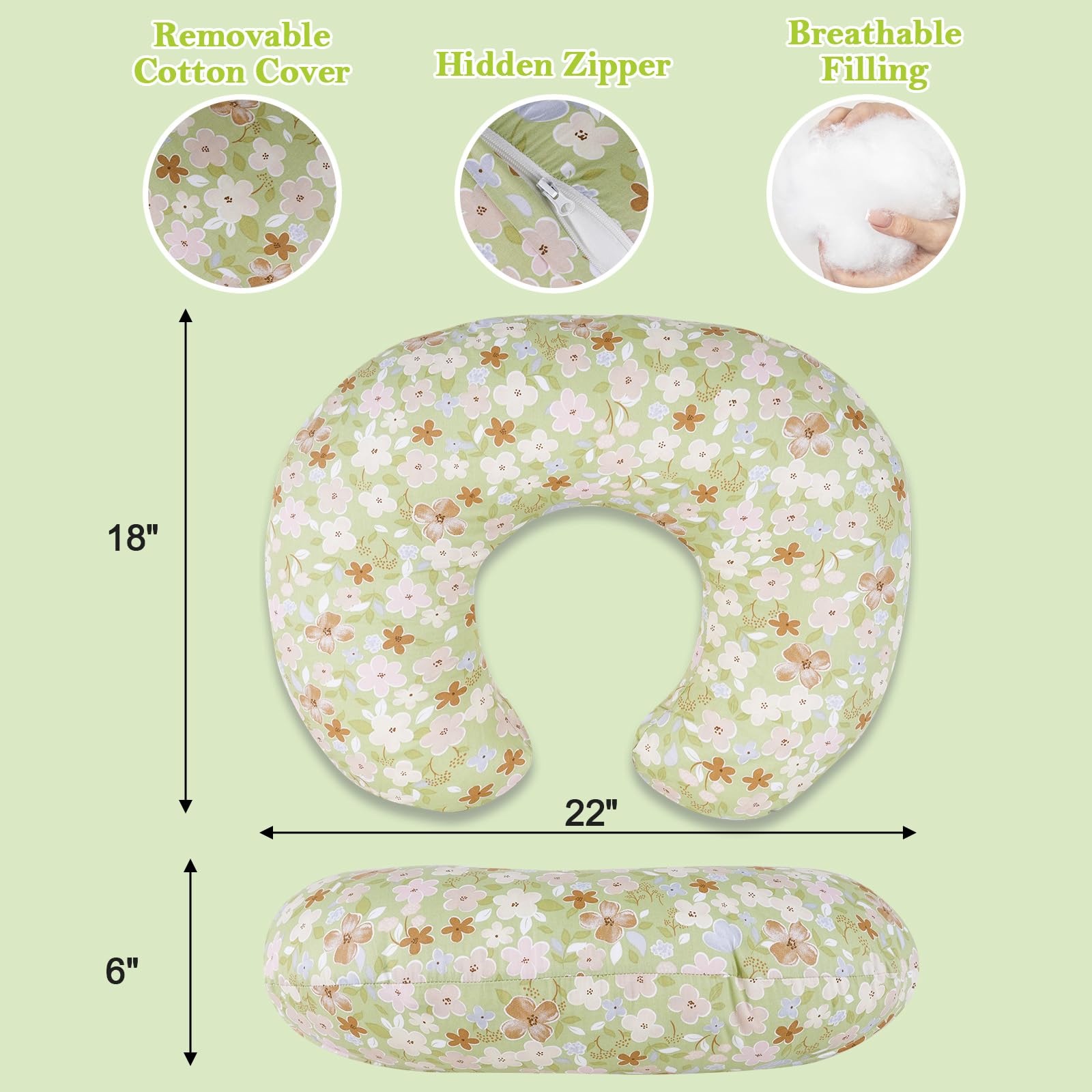 Midwife-Approved Comfort: Midwife-approved nursing pillow features breathable filling to prevent overheating, with a hypoallergenic removable cover (machine washable), adjustable firmness, and skin-friendly fabric for baby's delicate skin