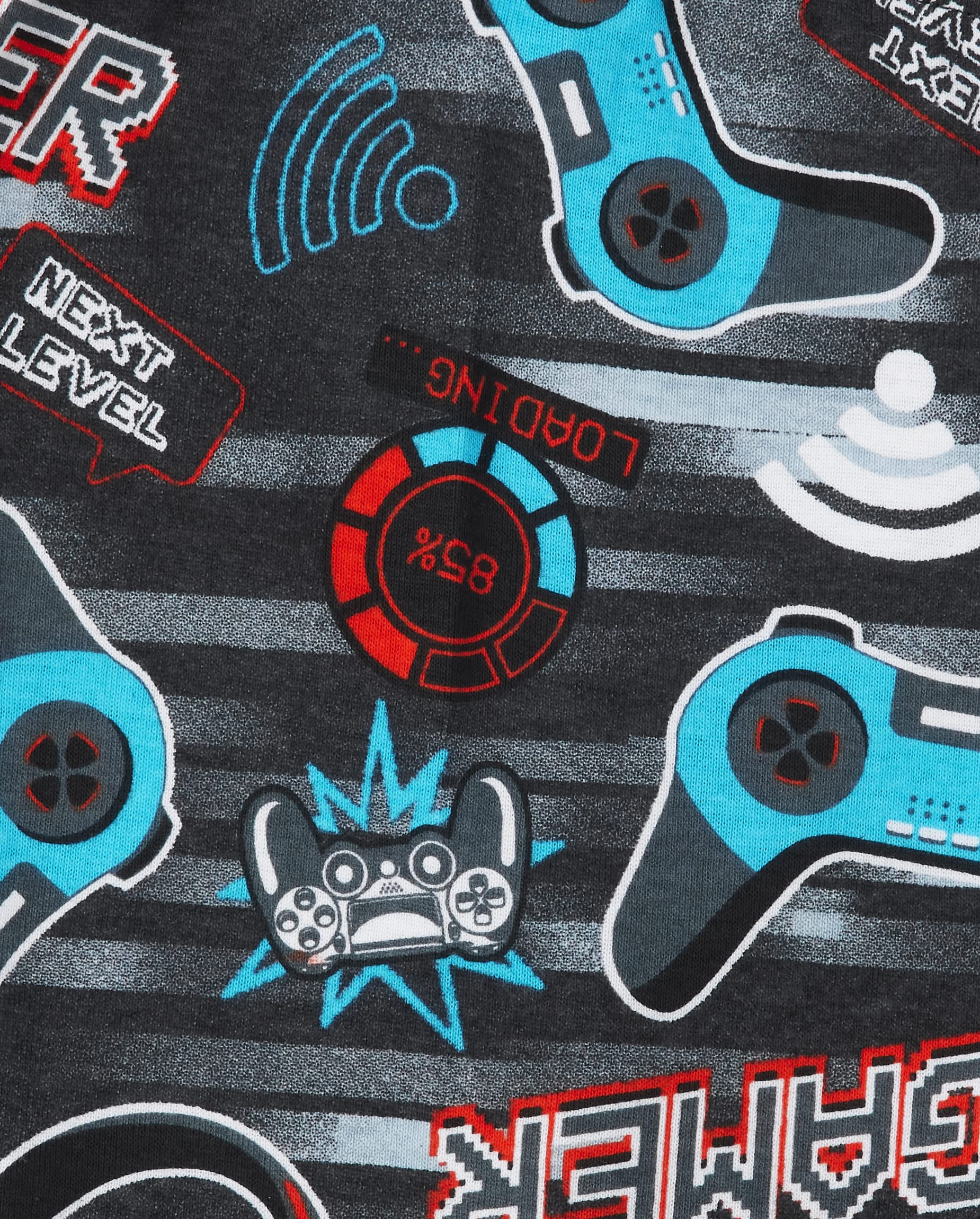PAJAMA TOP — Features long sleeves and rib-knit crew neck and sleeve cuffs: 1 top with allover gaming print; 1 top with 'Ultimate Gamer' graphic design at front