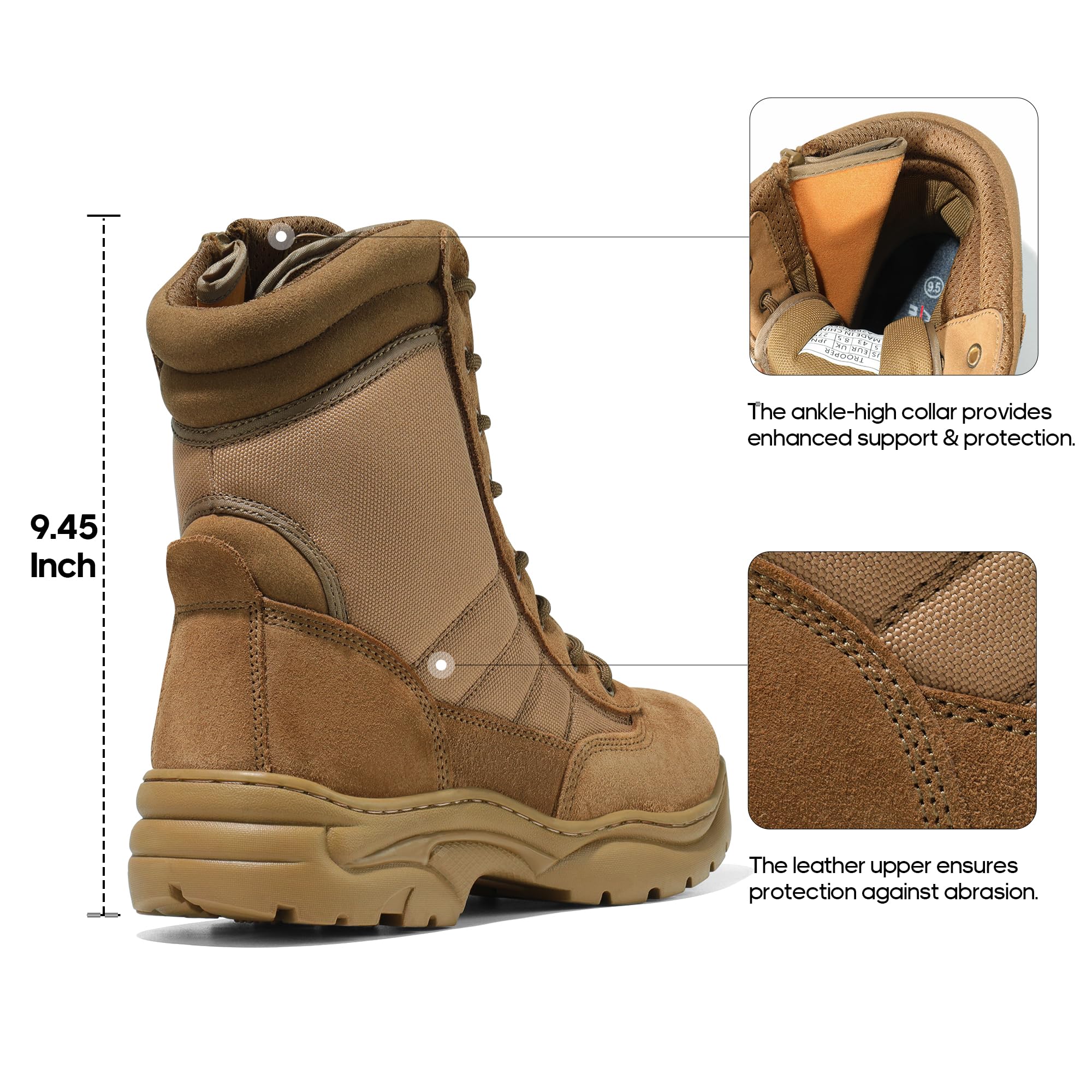 Protection & convenience: Ankle-high protection wraps & supports the ankles.The side zipper with hook-loop strap closure is easy to take on/off.