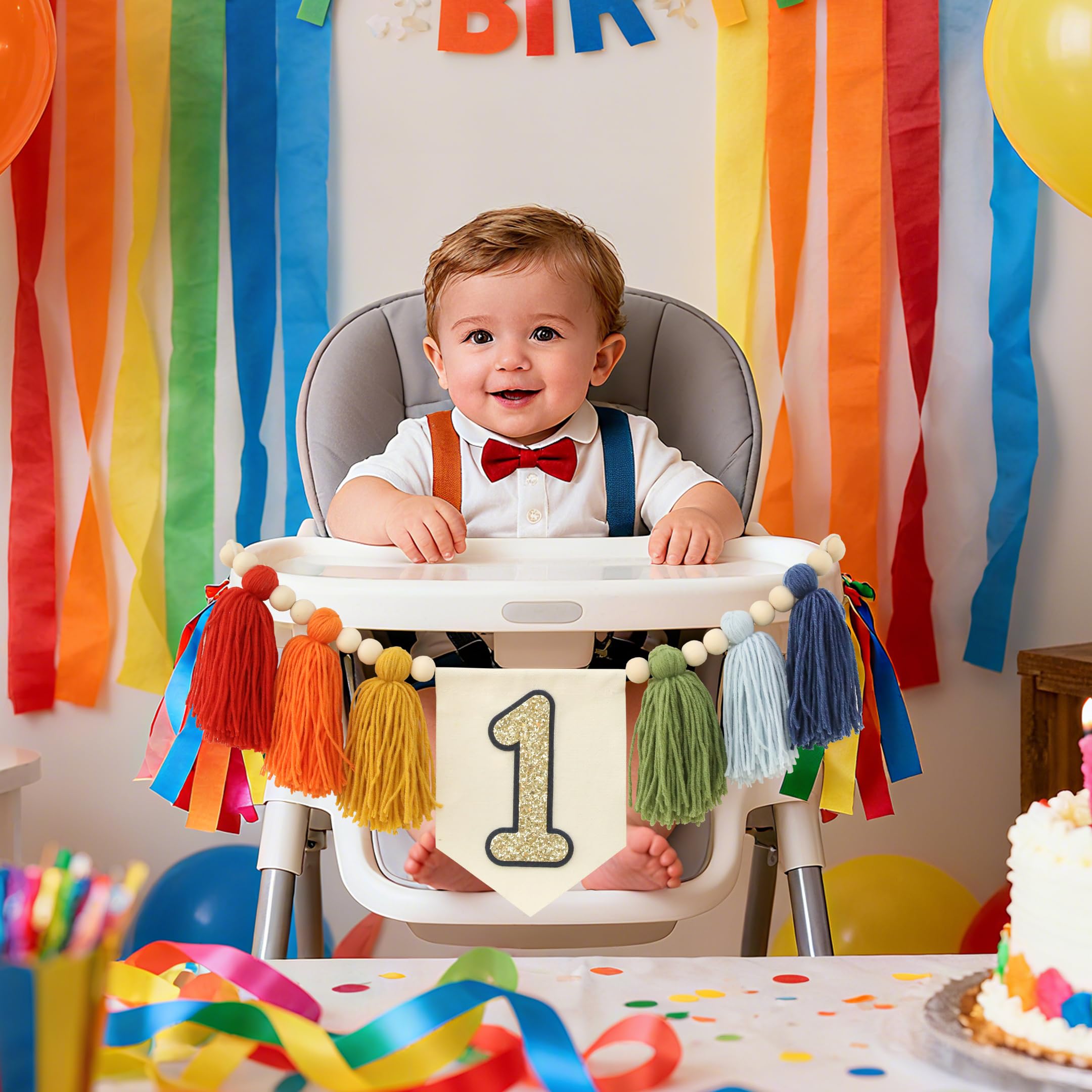 First Birthday Highchair Banner Decoration:Use this highchair tassel banner to decorate and embellish your child first birthday;also use it as a dessert table or cake photo background image along with the decoration to present the whole gorgeous birthday party