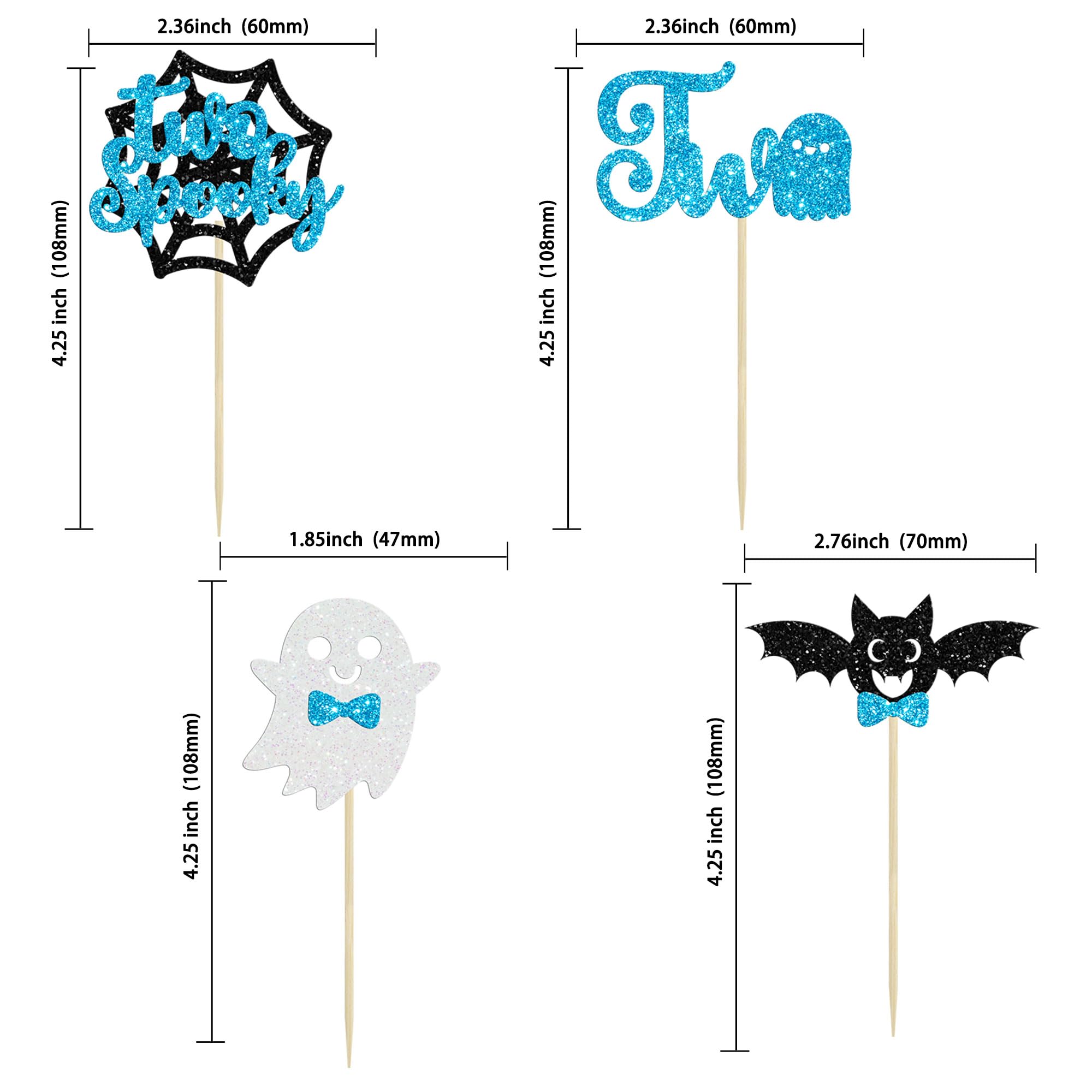 Material and Usage - Usage: They are perfect for Halloween theme 2nd birthday party, ghost theme baby shower party, celebrating birthday cake decorations supplies, which make the cupcake look tastier and more attractive. - Material: Made of paper material, solid, not easy to deform and fade and can reuse for many times; Please don't put them into oven for they are only decorative and not edible. Package and Size - Package: Pack of 24Pcs. Size: W 2"*H 4.3"/W 5*H 11cm(Include Stick). Comes with assembled, so you can insert into your cake directly, which make your cake more interesting. - If you want to return the item, please kindly contact us first, then we will deal with it until you are satisfied. Note 1.The cupcake topper picks have pointed end, please keep away from children when using. 2. These cupcake toppers are for decoration purposes only, not edible and do not place in oven or use for baking. 3. Due to the light and screen difference, the item's color may be slightly different from the pictures.