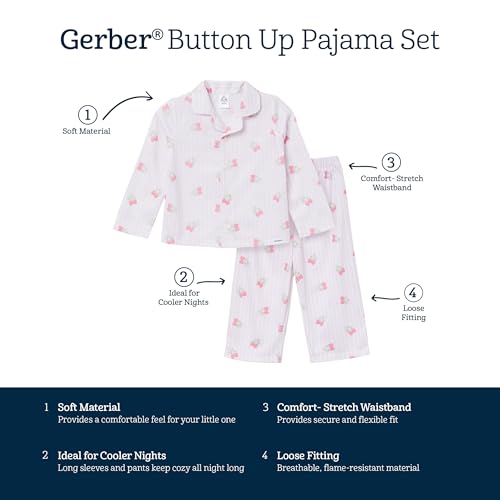 Description Make bedtime fun for everyone with our adorable baby or toddler 2-piece pajama set! The playful design makes getting dressed for bed enjoyable, while the soft and stretchy material ensures a comfy night's sleep. The pants feature a comfort-stretch waistband for a gentle fit, and the soft, rounded collar adds an extra layer of comfort. Perfect for cooler nights, this pajama set keeps your little one snug and happy so they can drift off to pleasant dreams. Flame resistant for child safety.