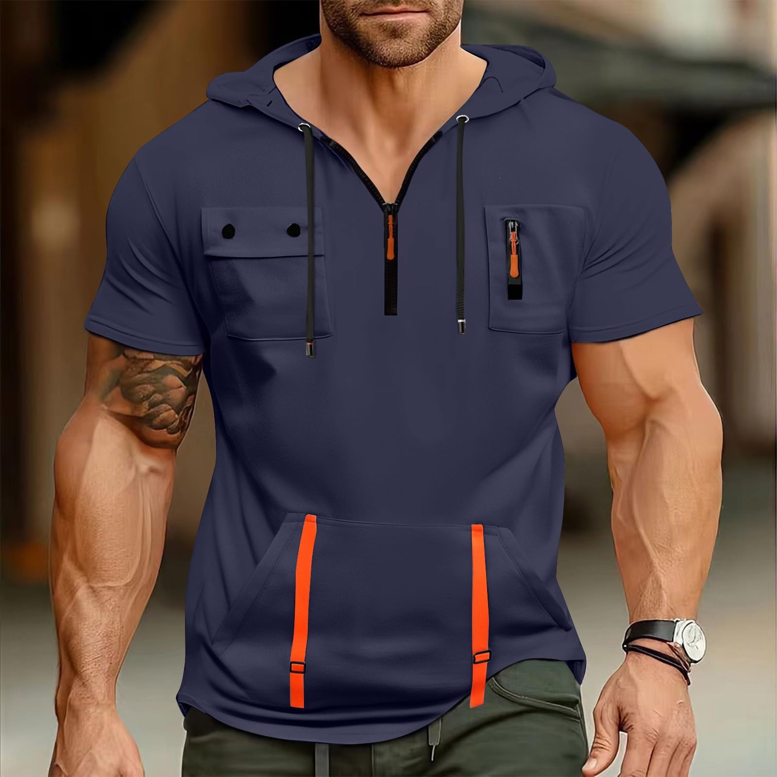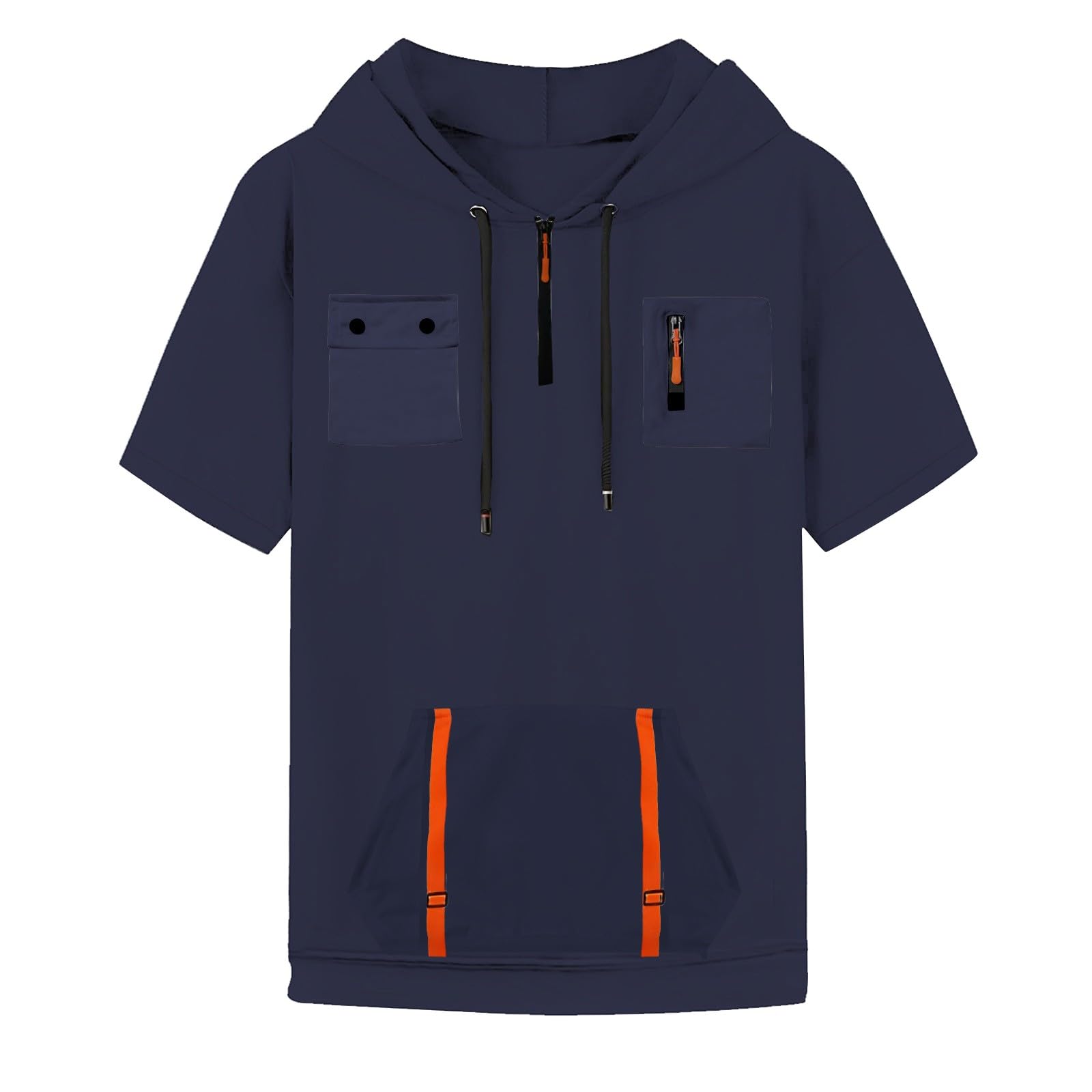 【Design】This short sleeve hoodies for men features a classic drawstring hood style, short sleeve, 1/4 zipper placket, multiple pockets, ribbed cuffs and hem, and has elasticity and enhanced freedom of movement.