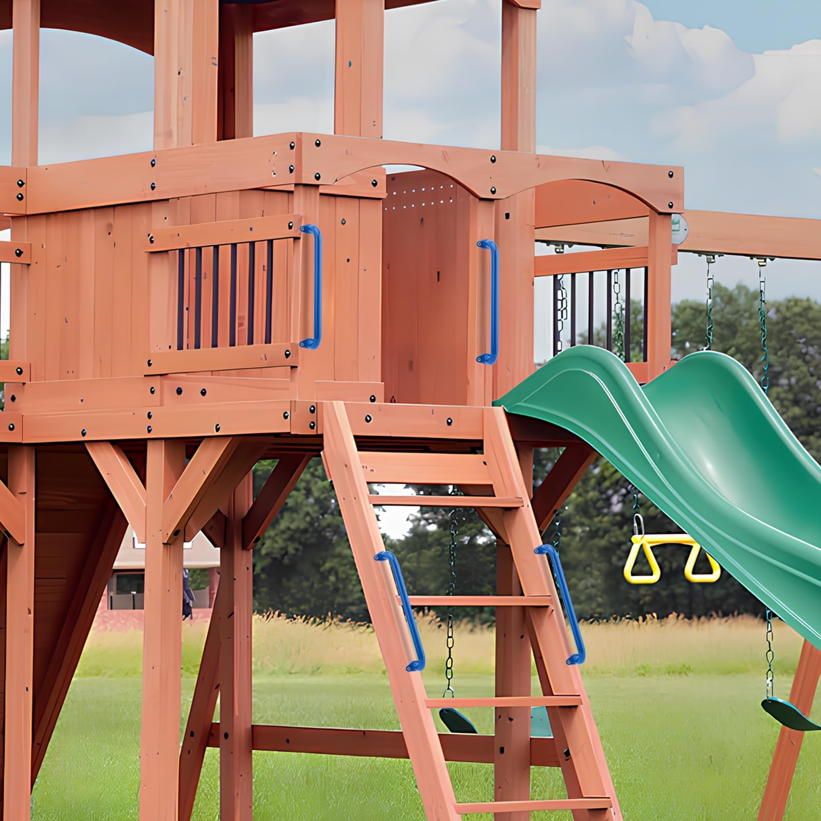 Easy and quick installation:The package includes 6 playground handles,24 expansion tubes for threshing and 24 stainless steel wood installation screws, which can be directly installed onto wooden columns or solid walls with a drill bit.(Note: For special hardwood and solid walls, please drill pilot holes with a drill bit first)