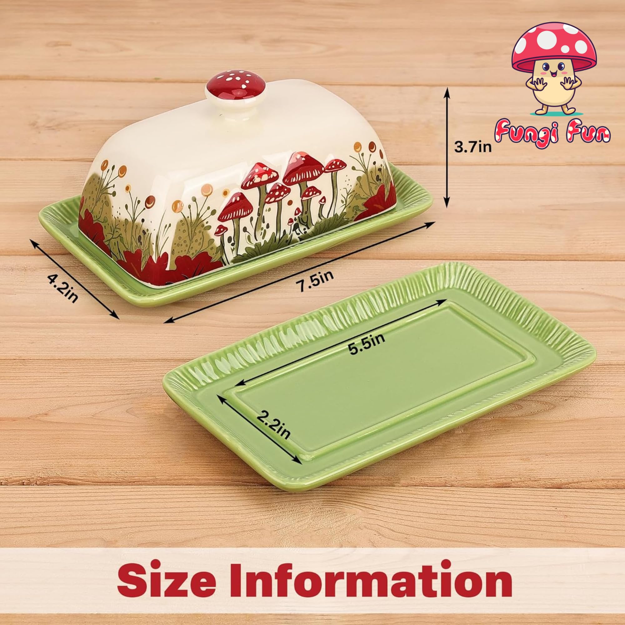Artisan Crafted Elegance: Expertly molded from durable stoneware, each butter keeper showcases unique artisan details with a smooth glaze finish. The lid fits snugly to preserve freshness, while its vintage-inspired mushroom design adds timeless elegance to your table.