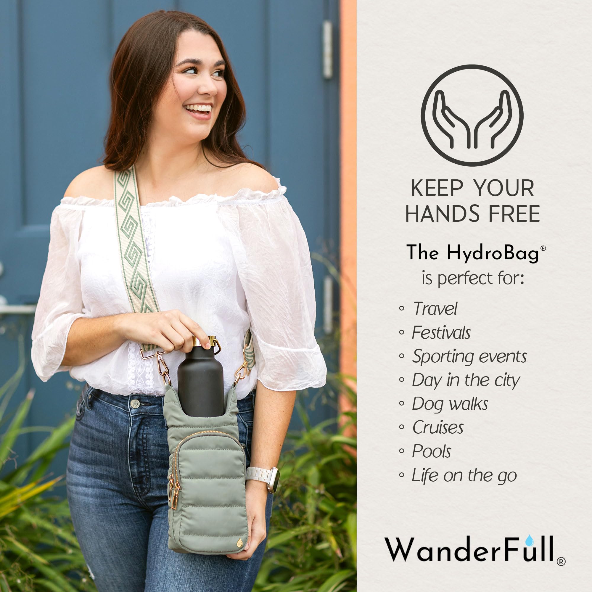 KEEP YOUR HANDS-FREE: Stay hydrated on the go with the patented WanderFull Original HydroBag; ideal for sightseeing, festivals, sports events, travel, or dog walks. Enjoy convenience and comfort without compromising on style.