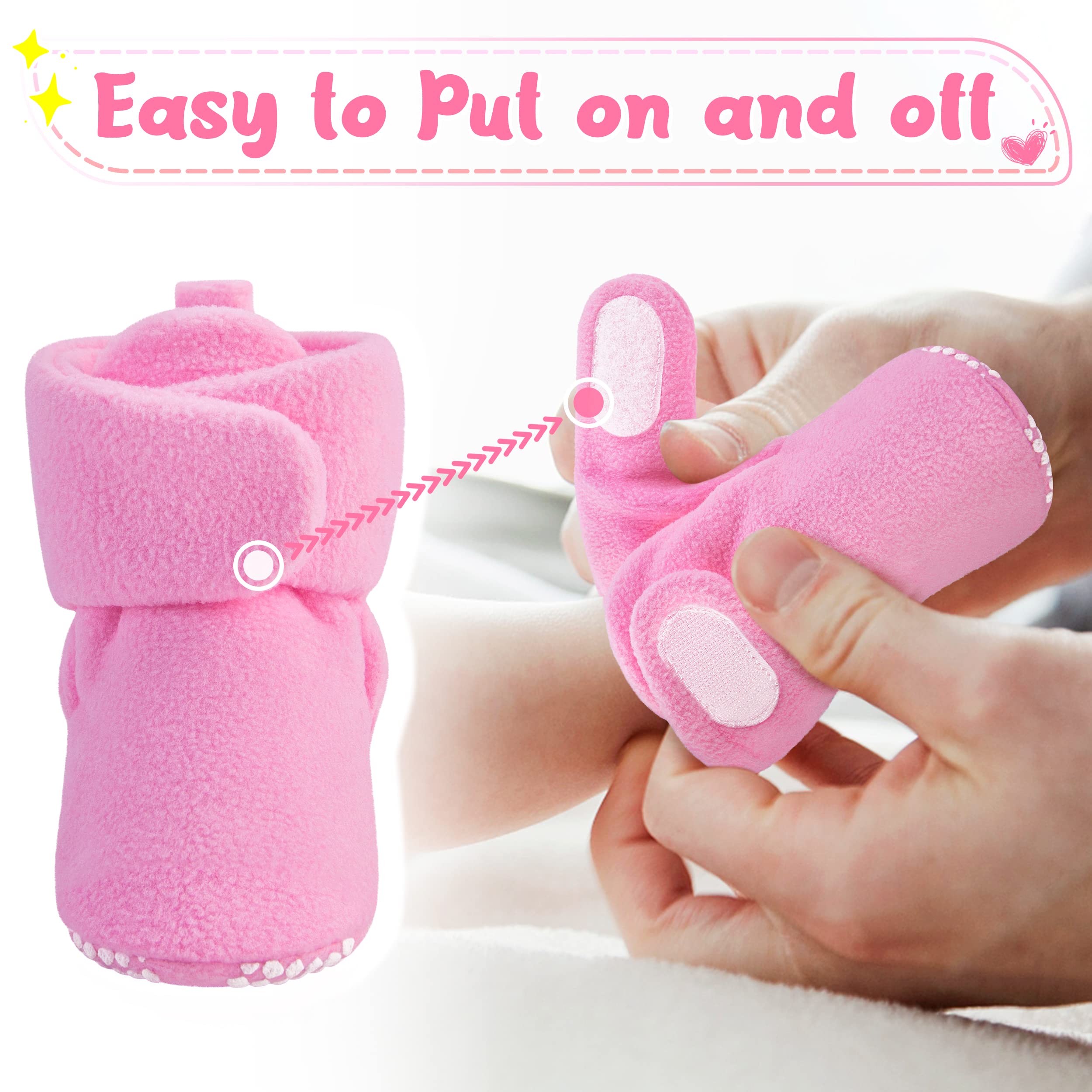 [STAY ON FOOT] The adjustable velcro booties with grippers stay on your baby’s feet with a comfy fit. These booties won’t get lost like baby socks as your little one plays when crawling on the floor or kicking in a stroller