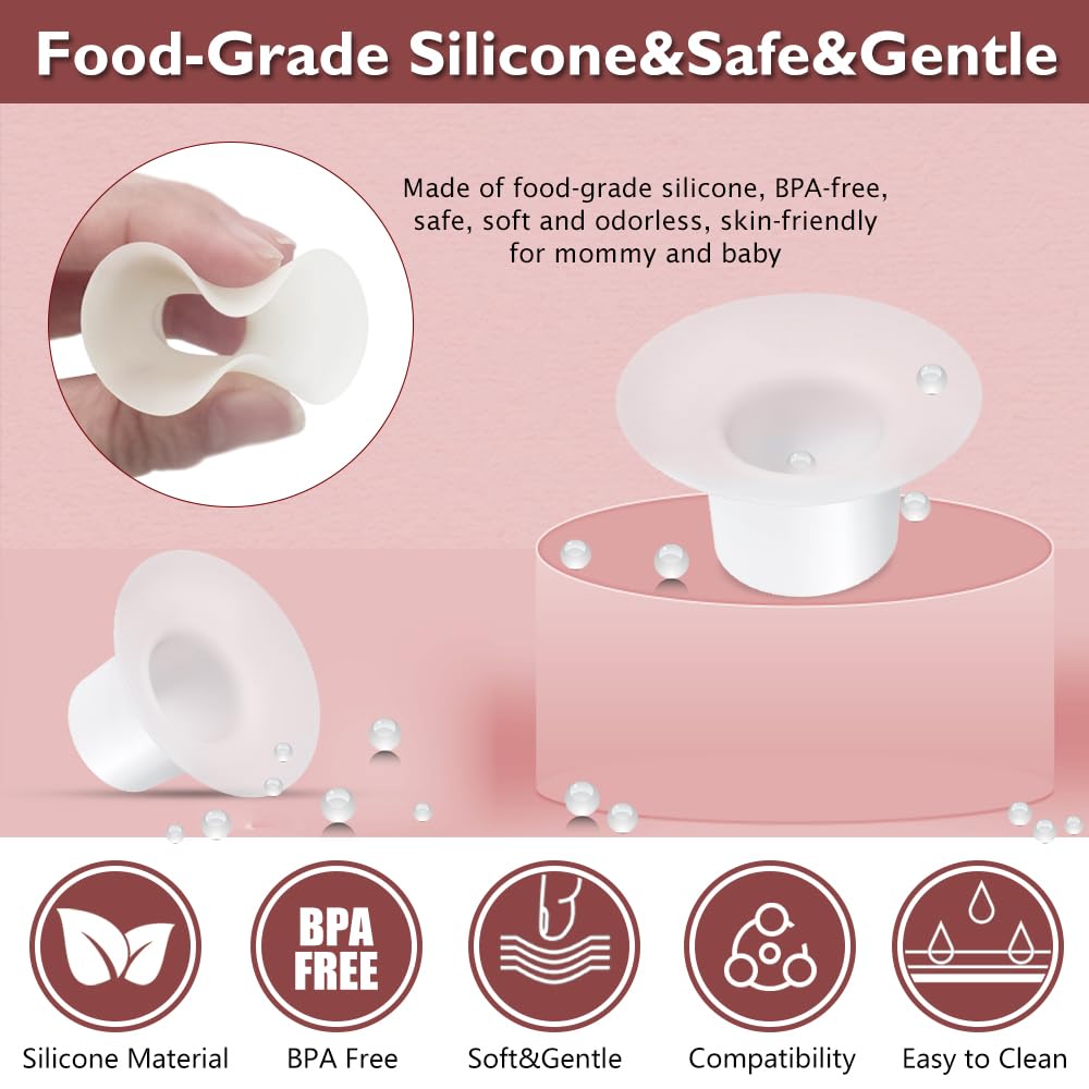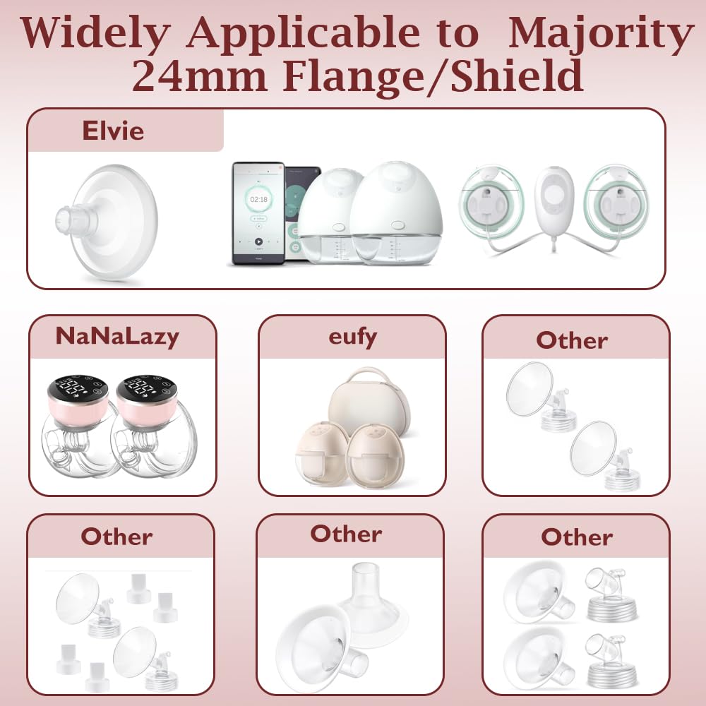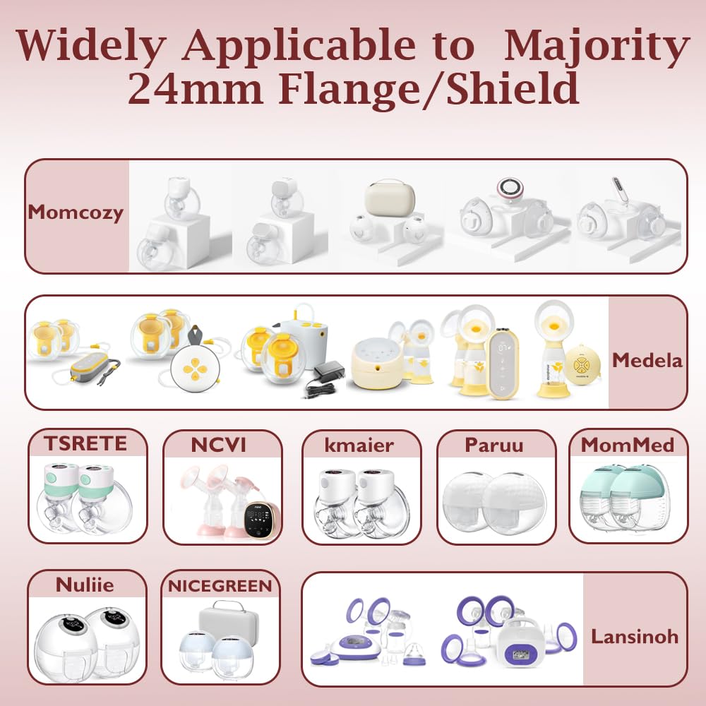 【Wide Compatible】:These silicone flange inserts will be compatible for Momcozy M9/M6/M5/S12pro/S9 pro/V2/V1; S18 S21 S23 Wearable Breast Pump; Medela PersonalFit Flex/Harmony/Freestyle/SwingMaxi/Sonata/Symphony;SpectraS1/S2;TSRETE;Elvie;Bellababy;Lansinoh;NCVI ; kmaier ; MomMed ; NaNaLazy; Motif Lun;Amada MYA 24mm breast shields.