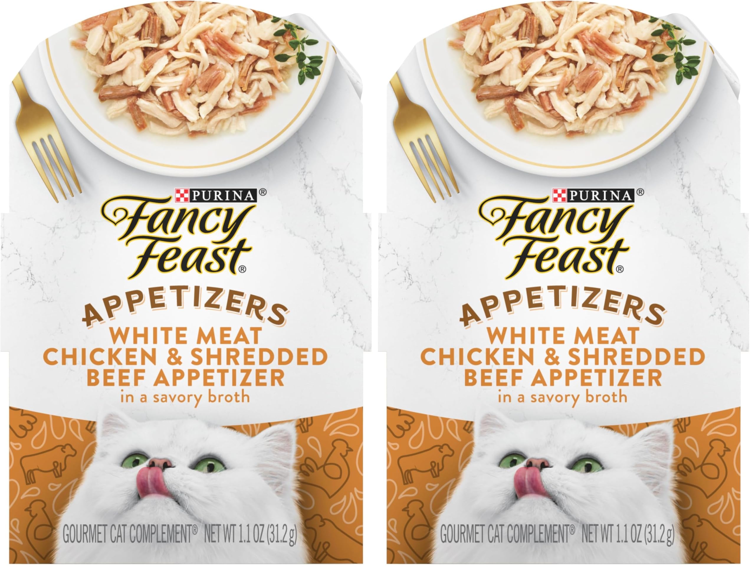 This Fancy Feast wet cat food chicken and beef appetizer complement is part of the complete line of Purina Fancy Feast gourmet cat foods, treats and complements