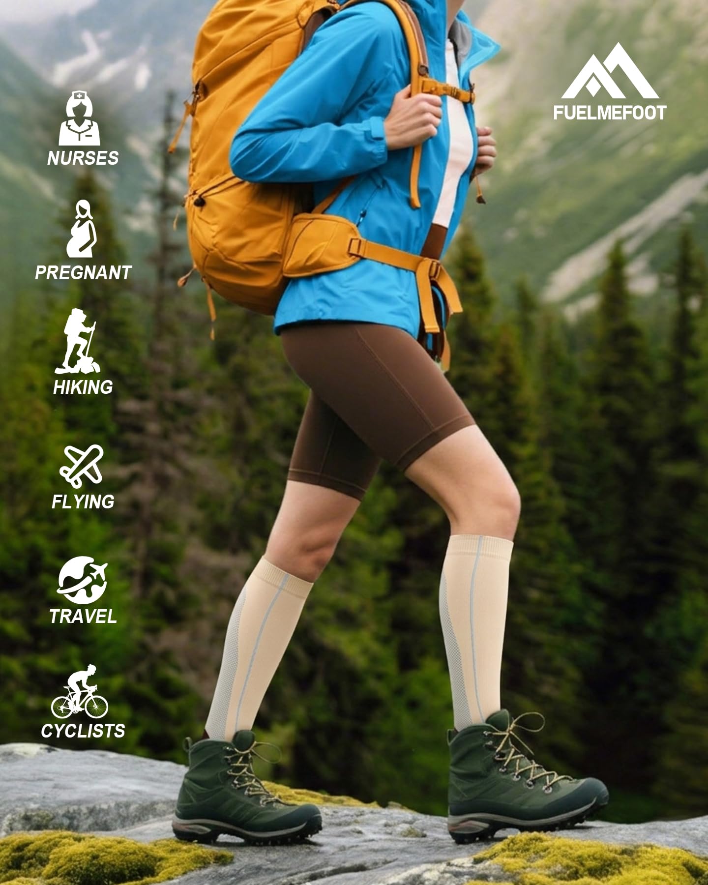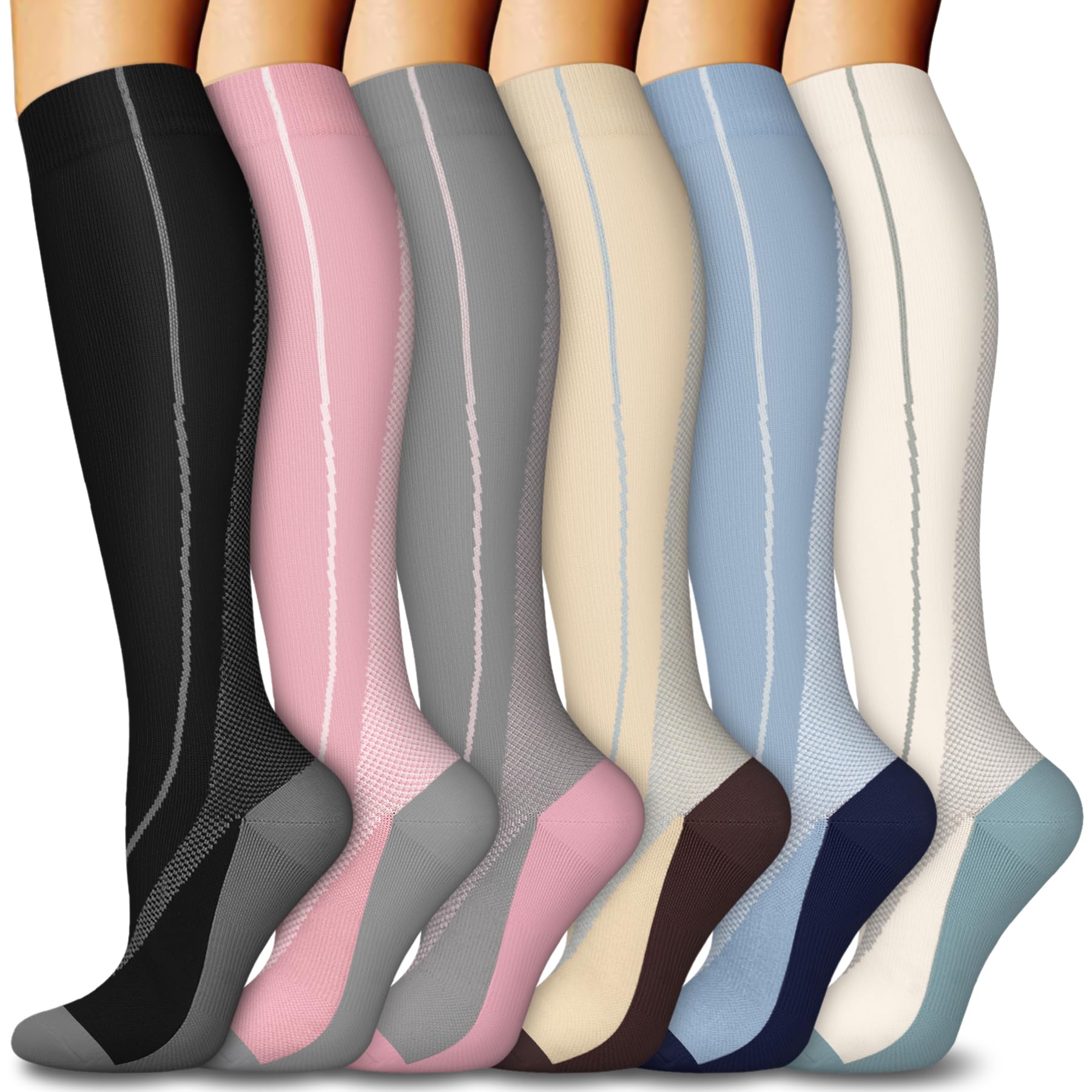 【ULTIMATE COMFORT & SUPPORT FOR ALL-DAY WAER】Our compression socks' delivering 360-degree stretch for all-day comfort and support, these compression socks offer the perfect balance of pressure and flexibility, with 15-20mmHg graduated compression. Whether you're on your feet all day or traveling, these socks enhance circulation, reduce swelling, and keep your legs feeling refreshed. Perfect for athletes, nurses, pregnant women, and anyone on the go.