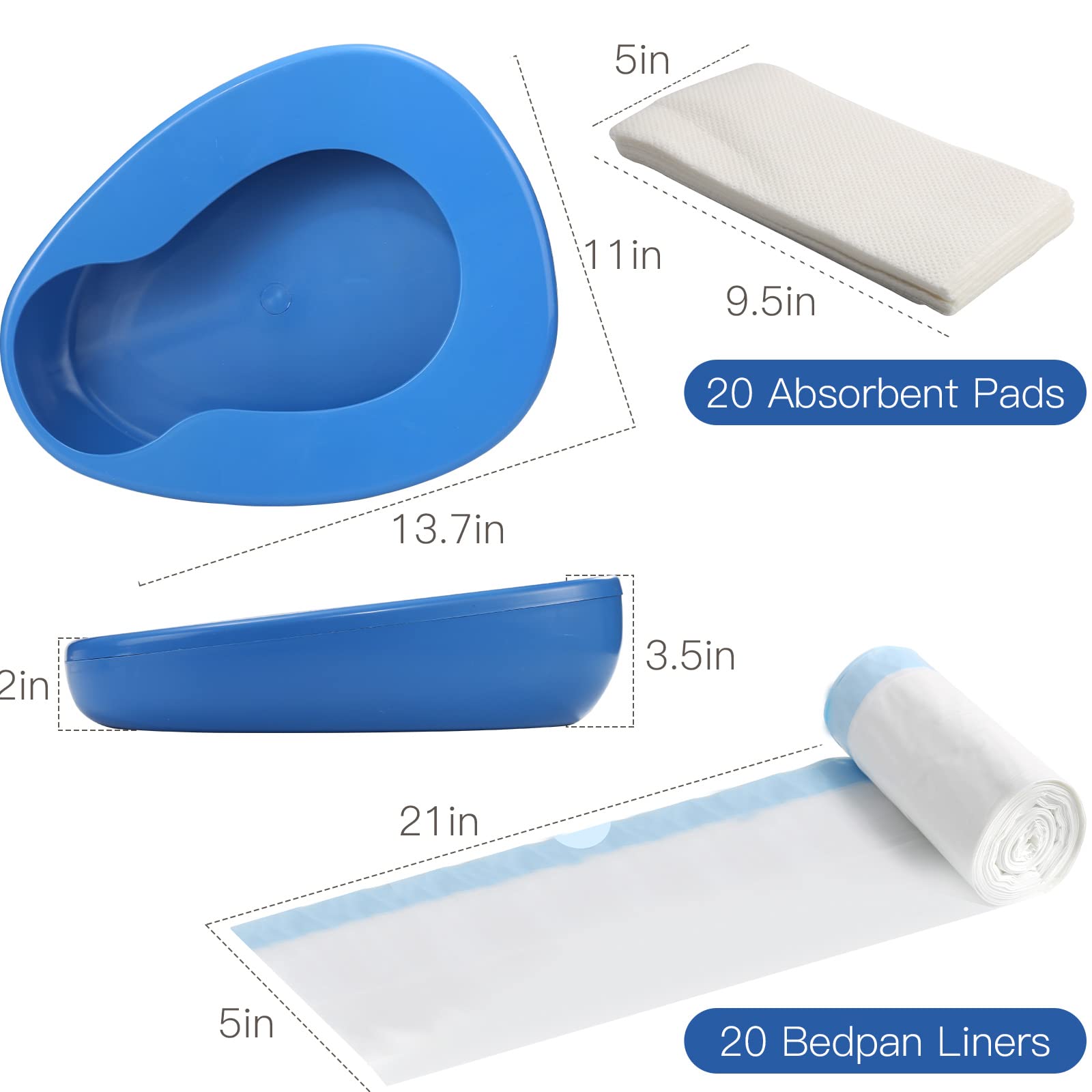 【Value Bedpan Pack】-ONEDONE bedpan set includes 1 durable PP bed pan, 20 bed pan liners and 20 super absorbent pads.Perfect for home use and hospital use, suitable for elderly, pregnancy, post-surgery, bedridden patients