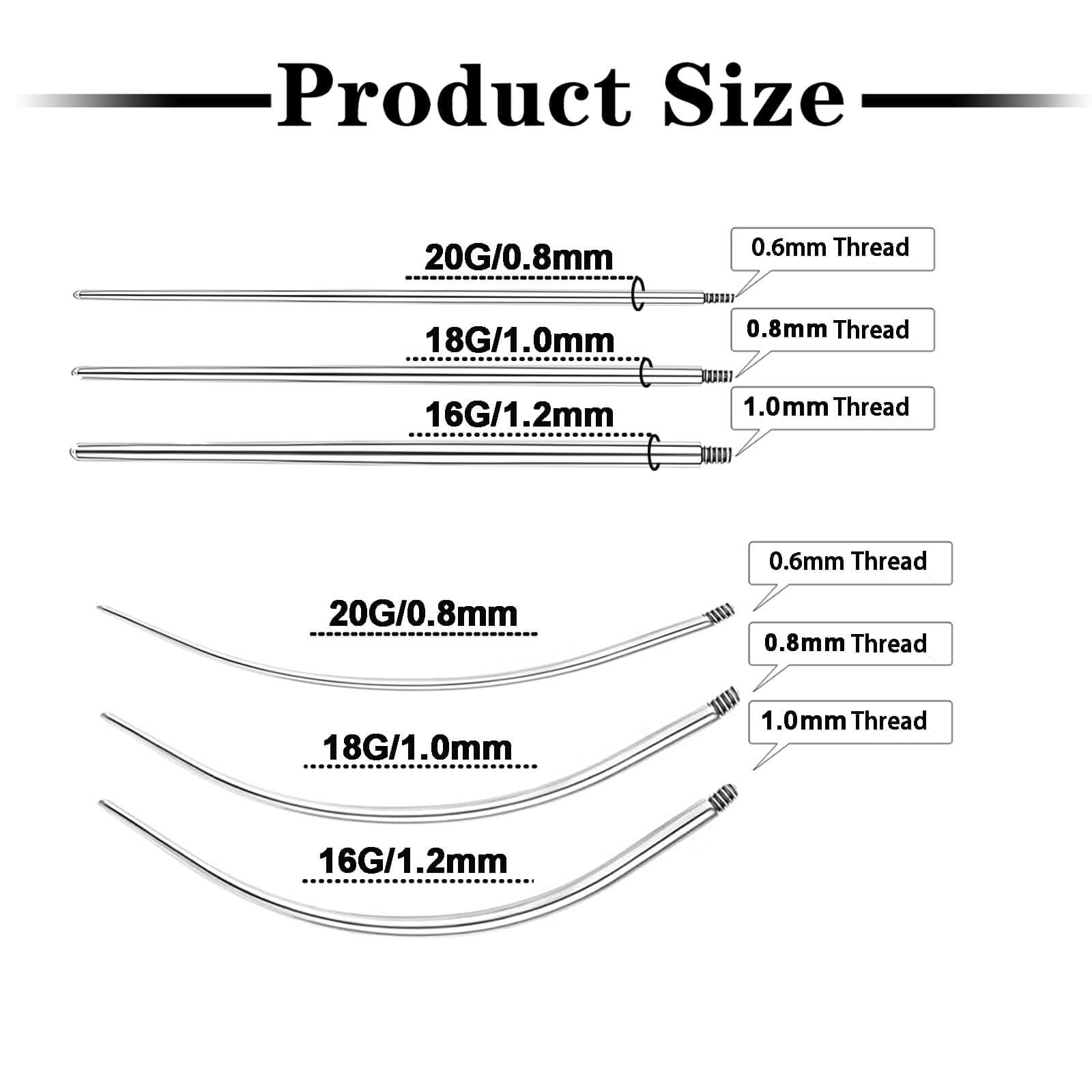 Complete Professional Piercing Toolkit: This comprehensive set includes 3 externally threaded guides and 3 curved guide pins, covering all standard 16G/18G/20G jewelry sizes for versatile applications.