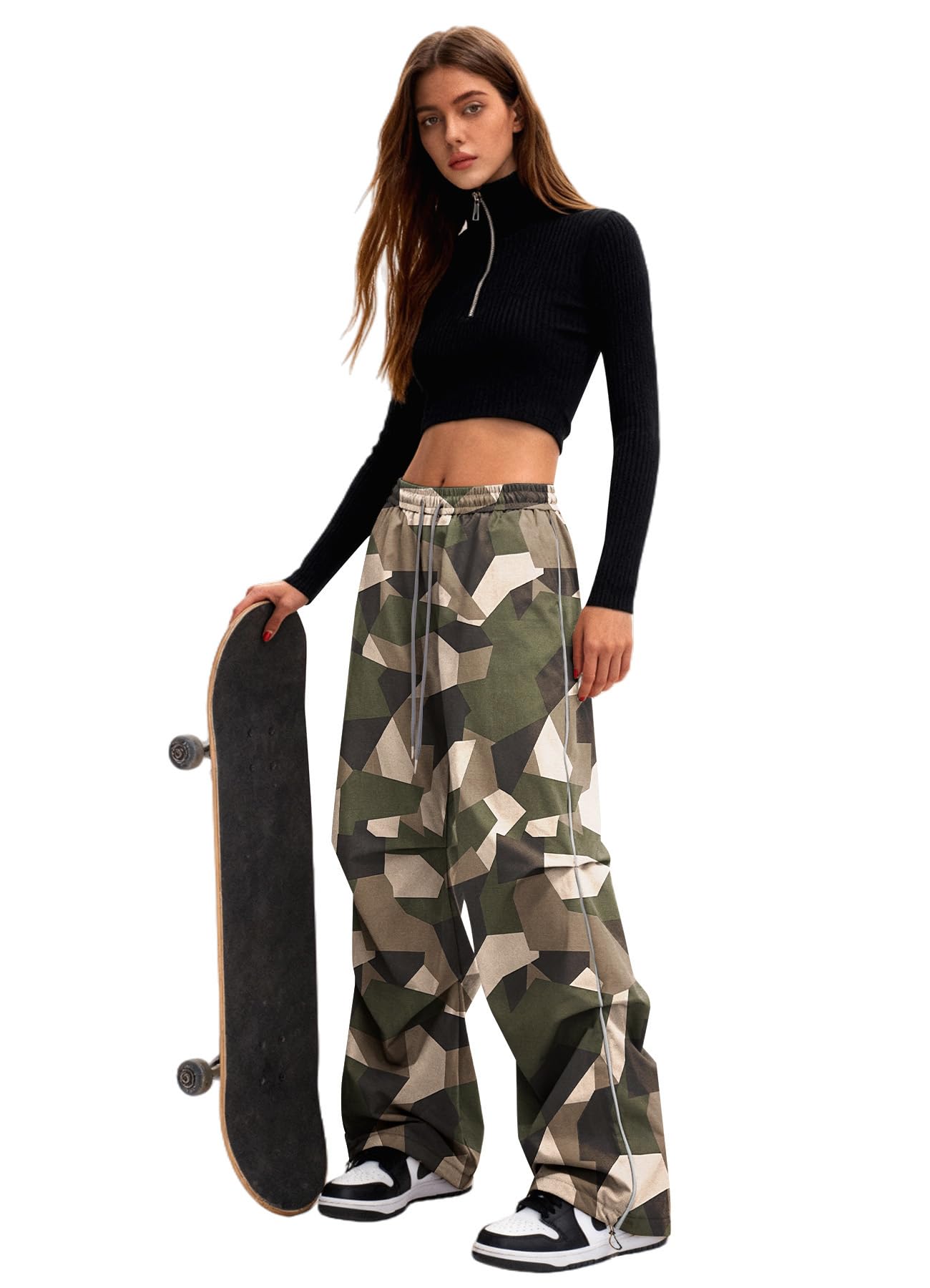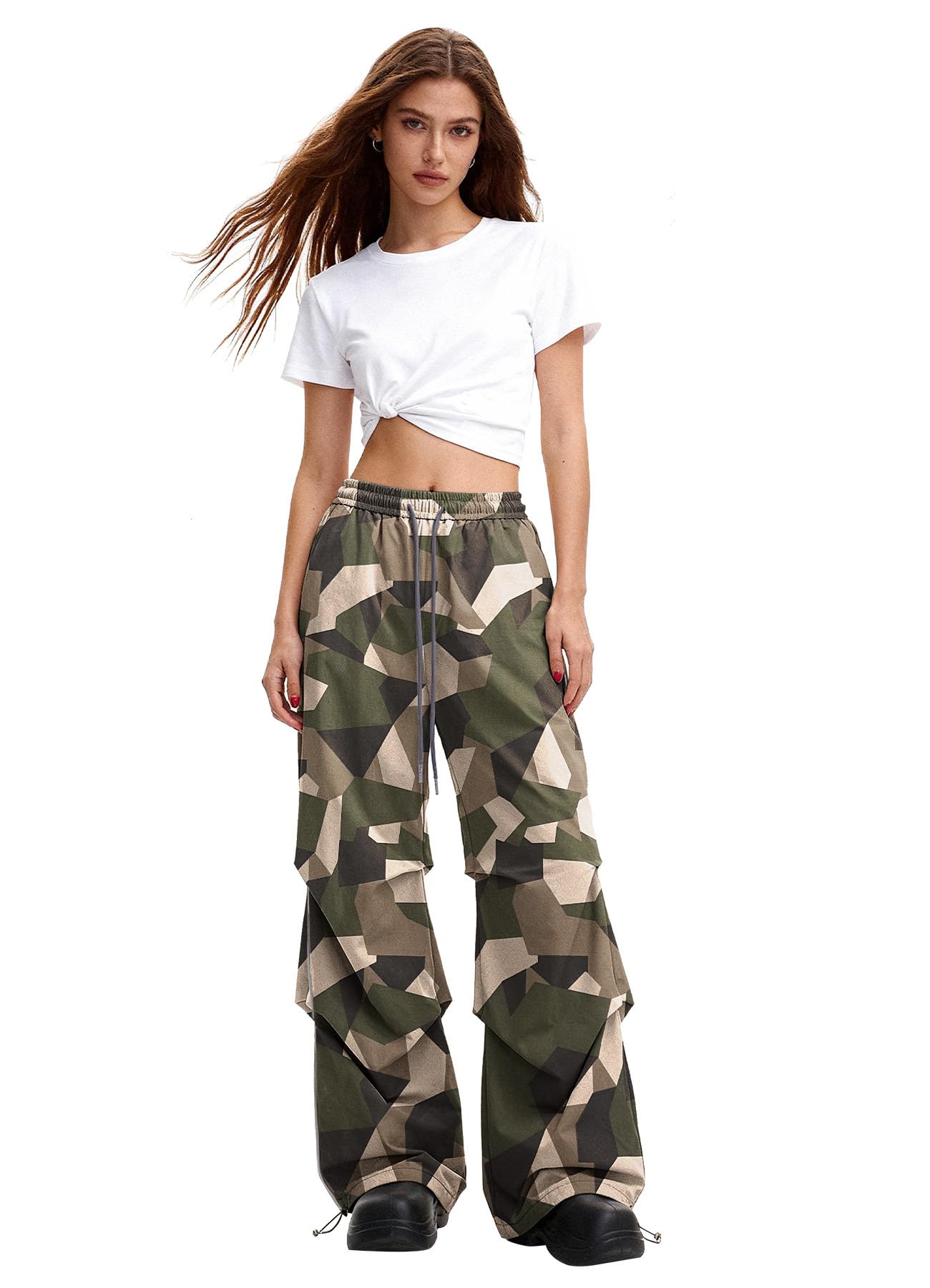 High Waist Y2K Baggy Parachute Pants: Designed with a high waist and a Y2K-inspired baggy parachute silhouette, these wide leg pants create a balanced, relaxed fit that complements different body types and delivers a modern streetwear look.