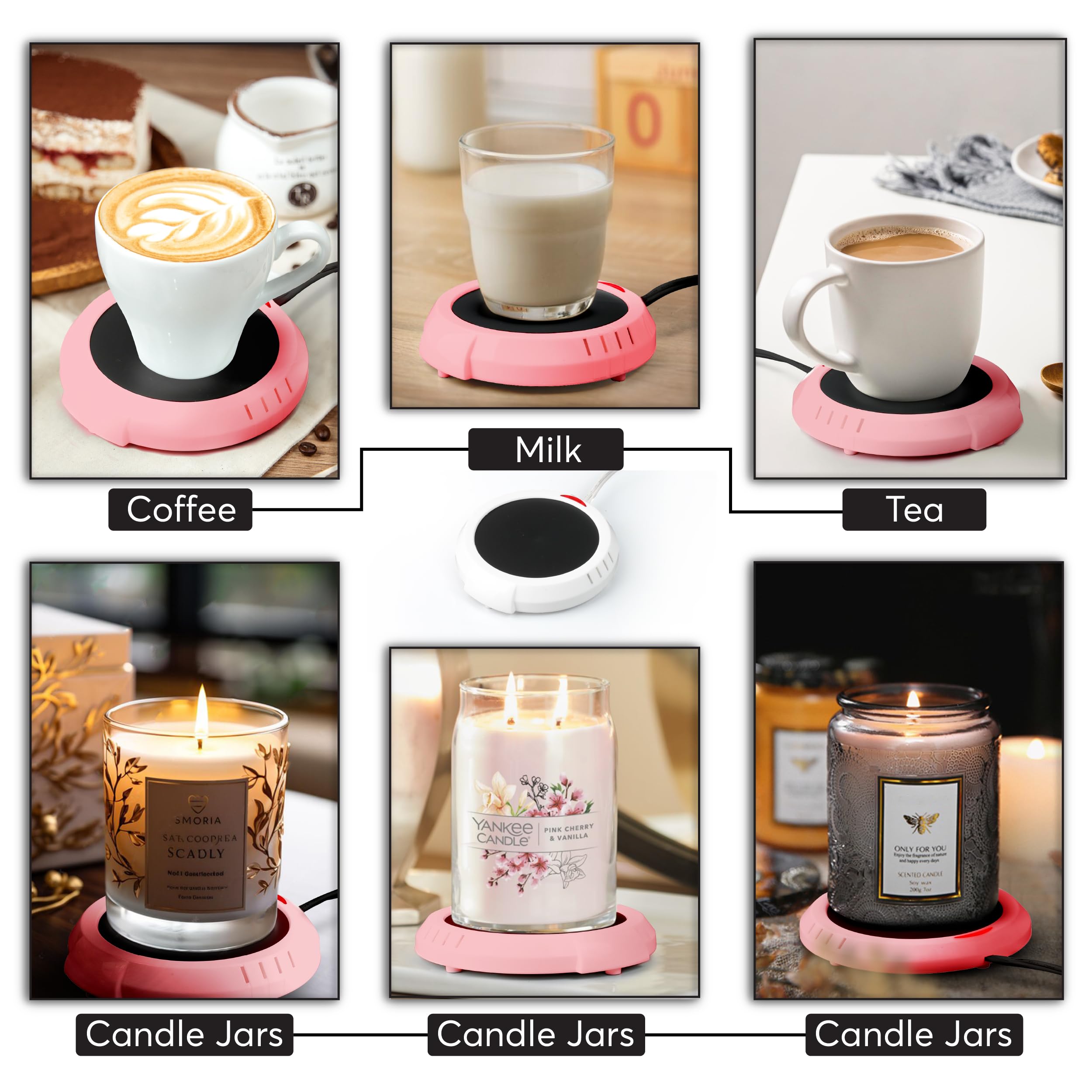 EXTENDED WARMTH FOR BEVERAGES AND CANDLES: Picture this: your coffee or tea is always at the perfect sipping temp. And those candles? Pure relaxation, no flames. Our electric coffee mug warmer for desk works its magic, keeping it all cozy just for you!
