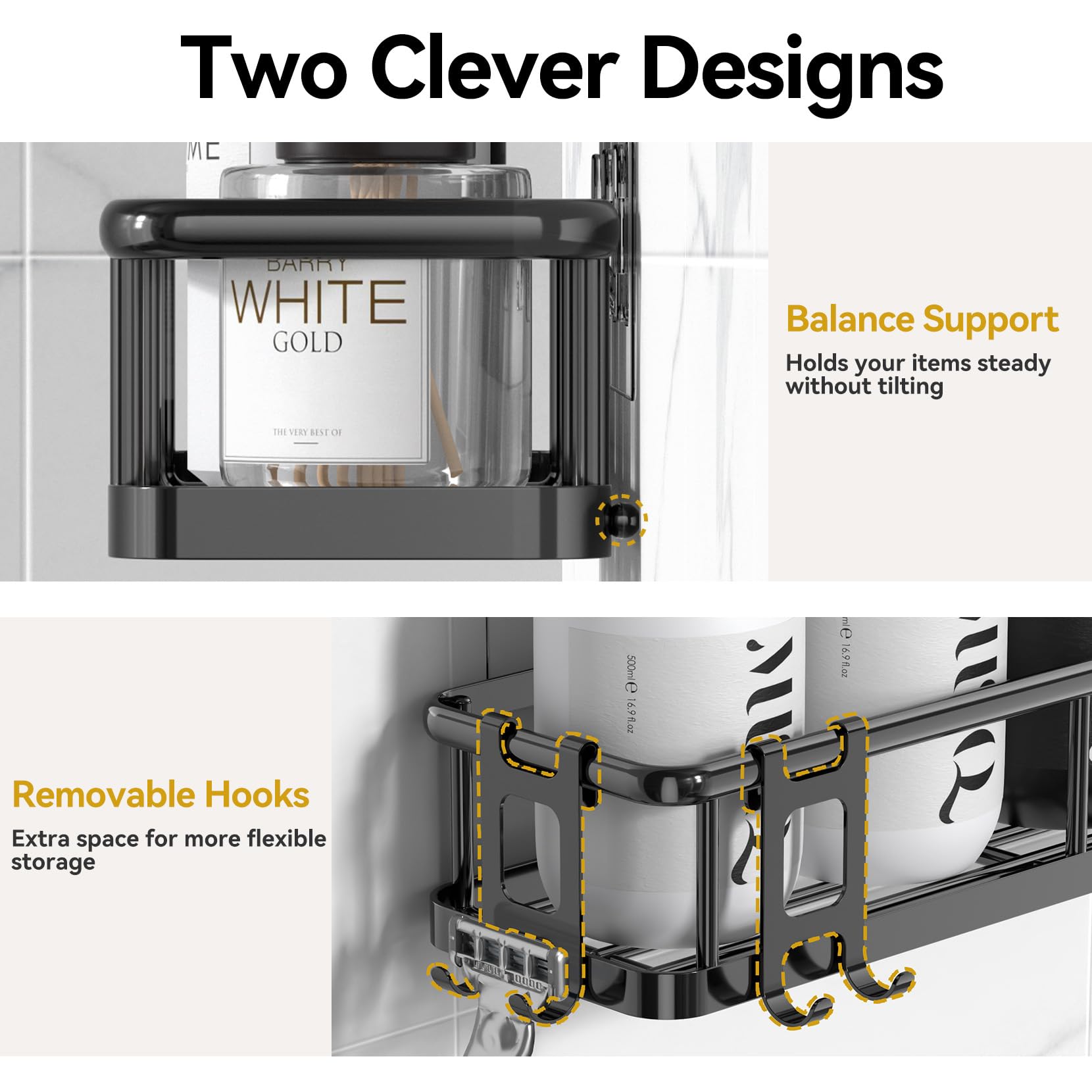 The One Organizer That Moves With Your Life: Why buy single-use shelves? This shower organizer redefines flexible bathroom storage but doesn’t stop there. Use it as a shower caddy adhesive solution, then easily relocate it to the kitchen, bedroom, home office, laundry room, or even your RV. Ultimate adaptability meets timeless design