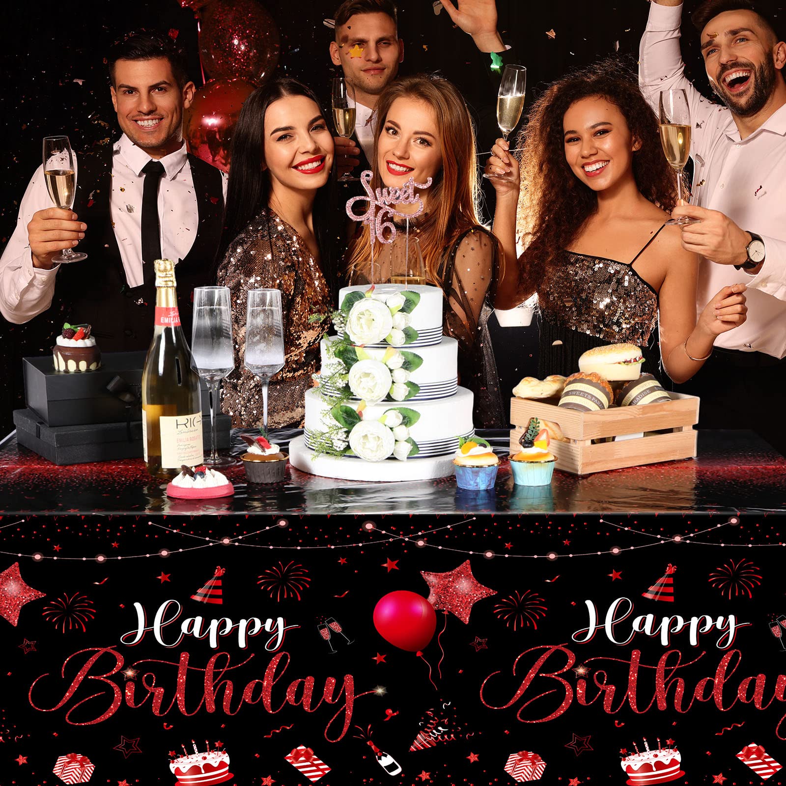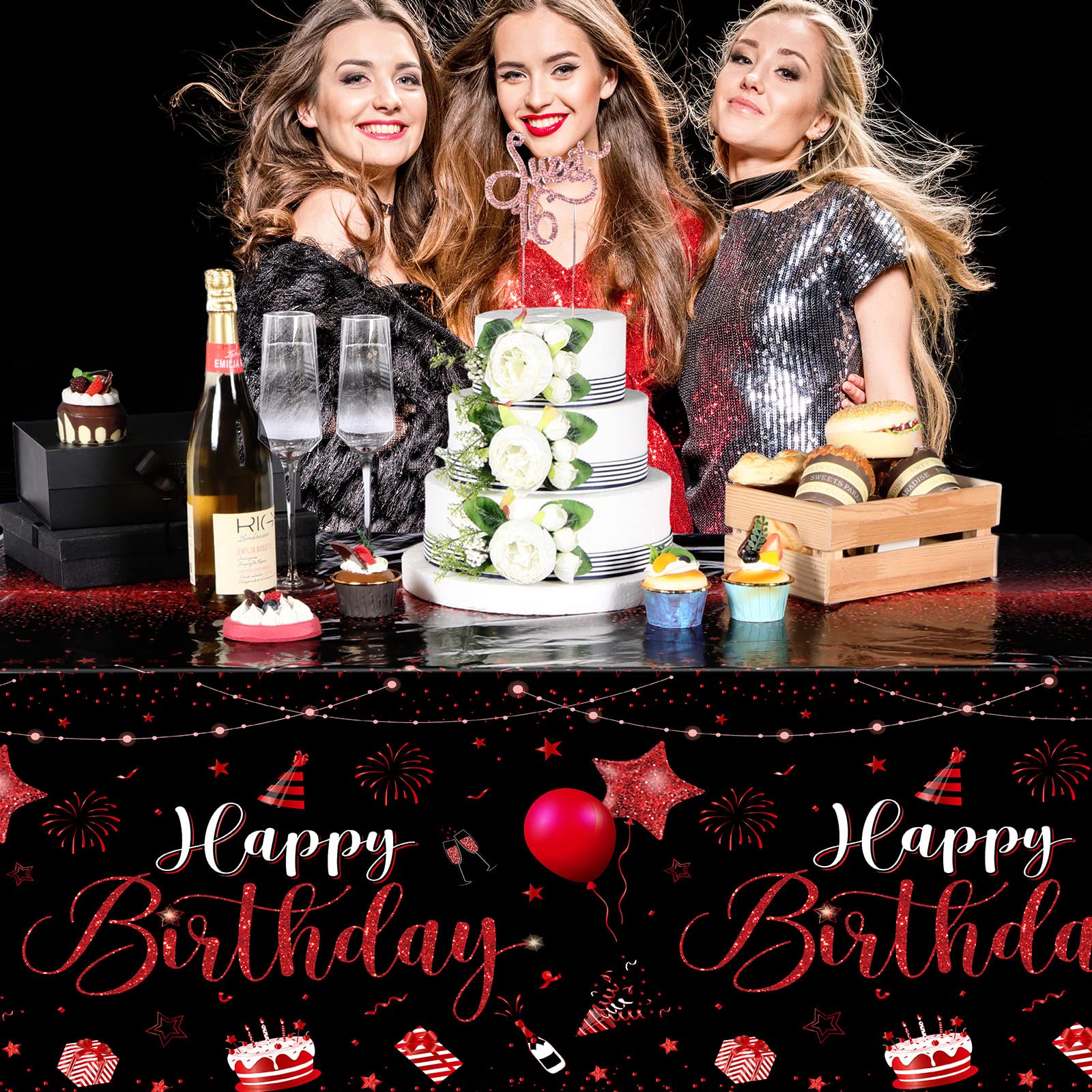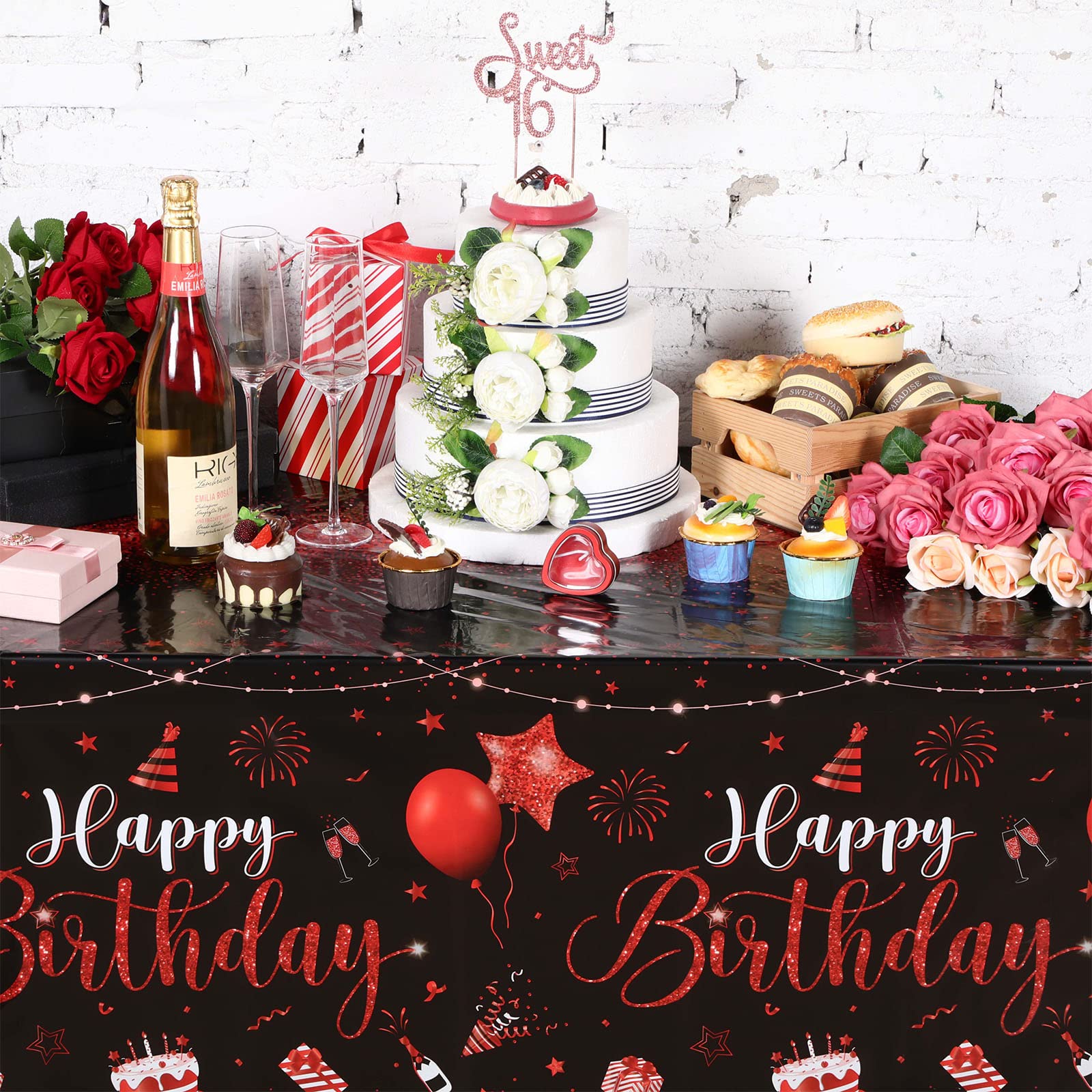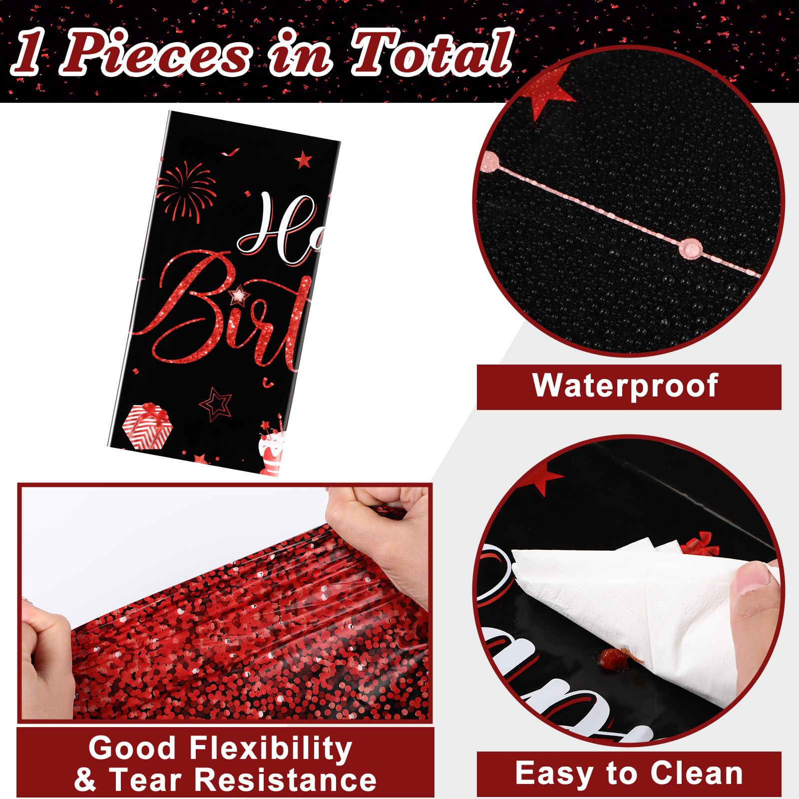 What You Will Receive: the package contains 1 pieces of happy birthday tablecloths in classic black and red colors, enough to meet your using and replacing needs for holding a birthday party