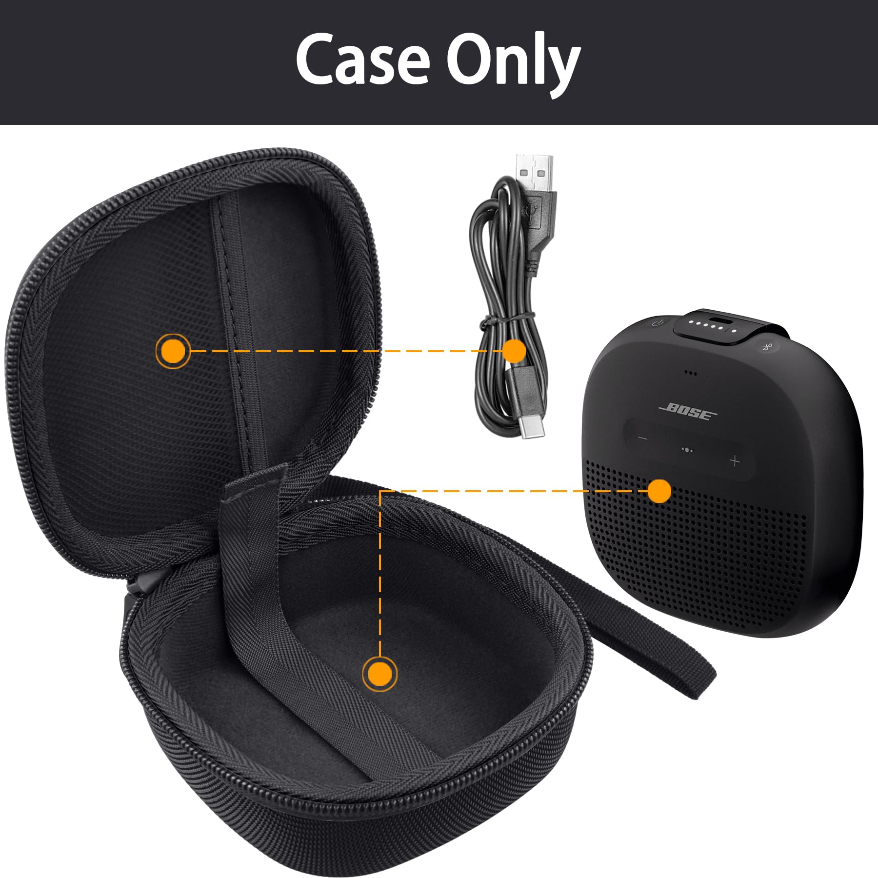 The smooth zipper makes it easy to access the bose sound link micro at any time. The upper mesh pocket can hold Data cable and additional accessories,The placement space below can help secure the bose micro bluetooth speaker well and prevent it from slipping during transportation.