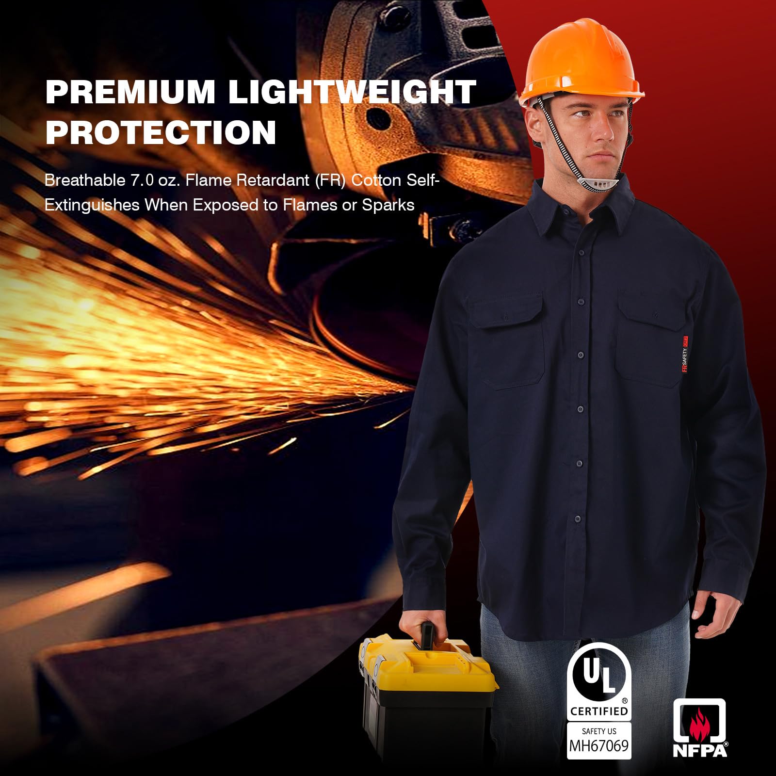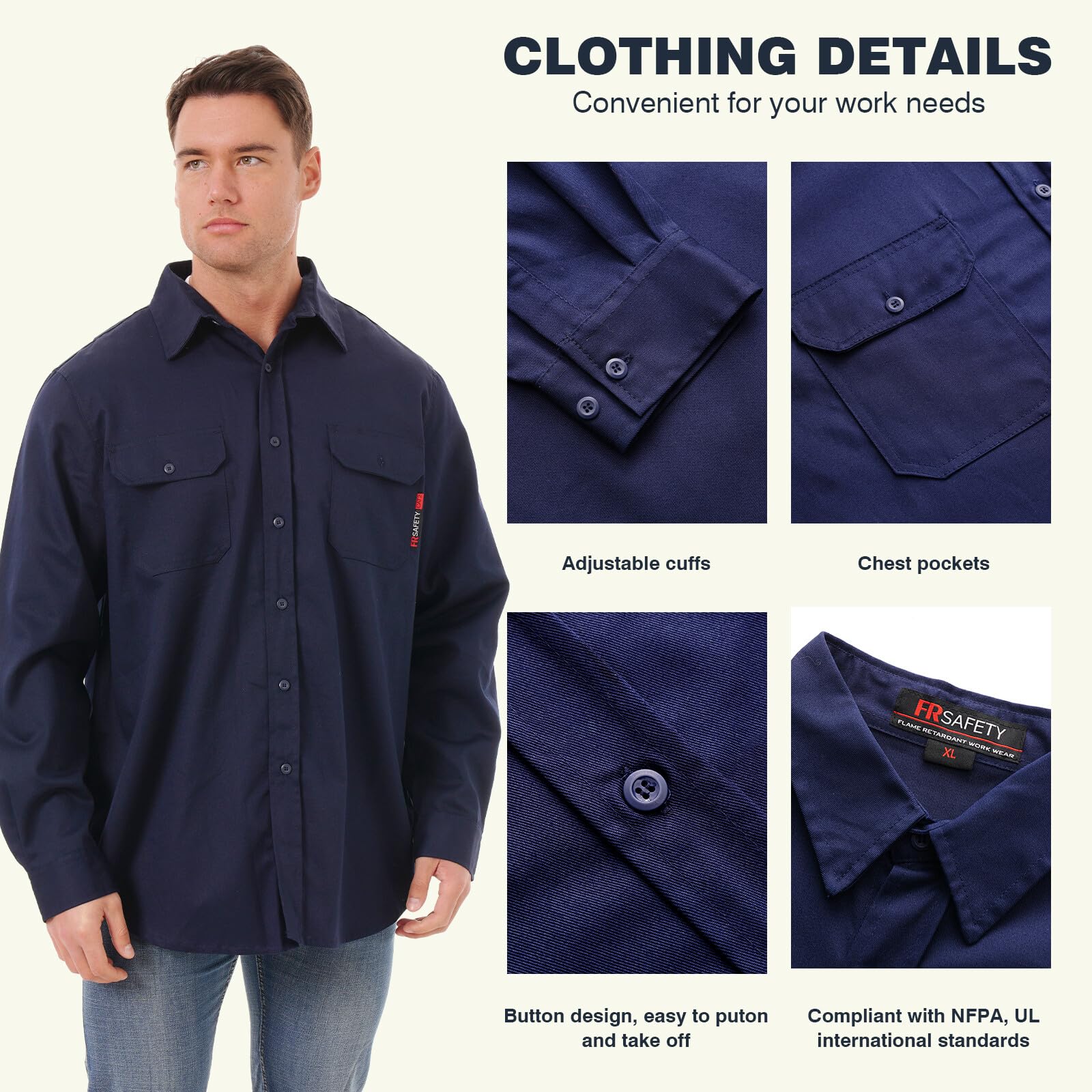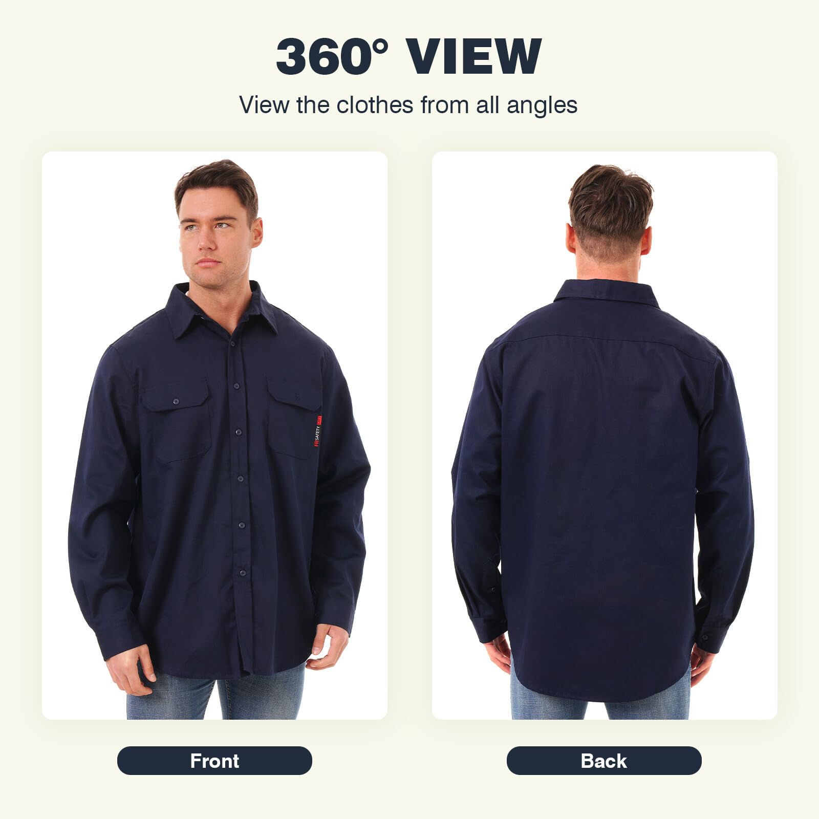 【Tips❗❗❗ Flame retardant shirts ≠ fireproof clothing】: Our flame retardant shirts are different in nature from fireproof clothing. Flame retardant clothing is added to the surface of the clothing flame retardant or the use of flame retardant fibers (such as aramid), when in contact with fire will slow down the burning speed or self-extinguishing from the fire, but can not completely prevent combustion, will still be charred, suitable for short-term sparks splash occasions.