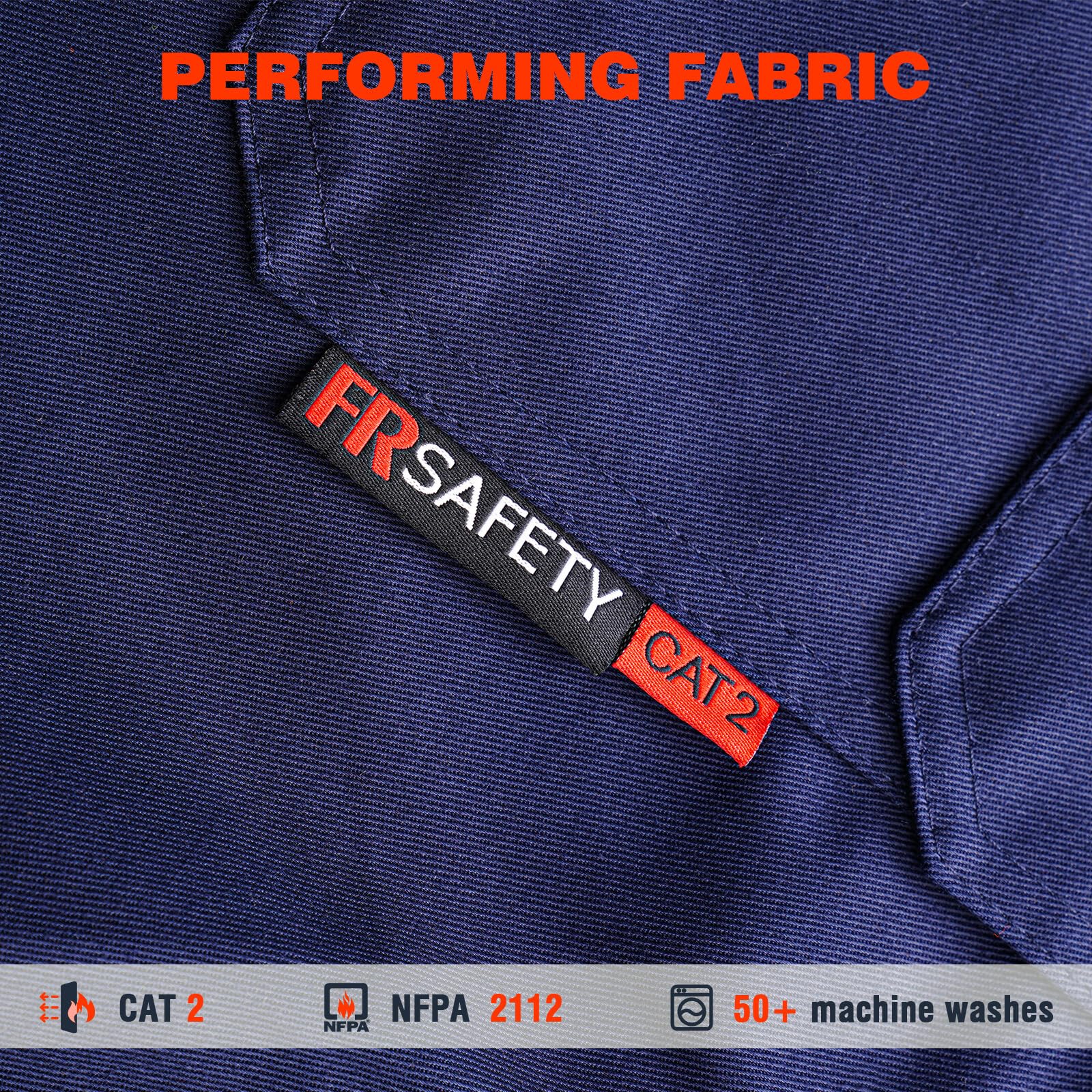 【Full protection】Arc Rating ATPV 9.3 Cal/cm², Fabrics, buttons, and seams are flame retardant.