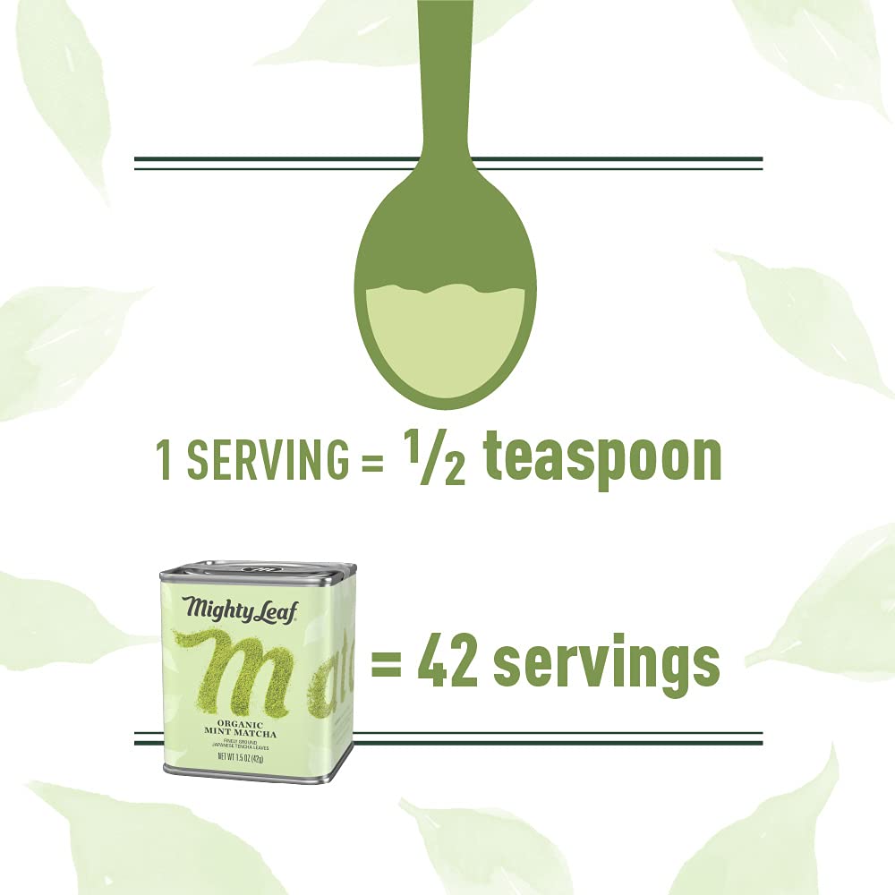 Contains one (1) 1.5 Ounce Tin of Mighty Leaf Organic Mint Matcha Green Tea Powder.