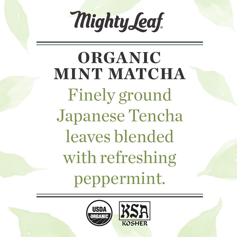 Flavor and Tea Type: Finely ground fresh peppermint leaf is blended with organic Japanese matcha for a balanced cup that finishes with notes of cooling mint.