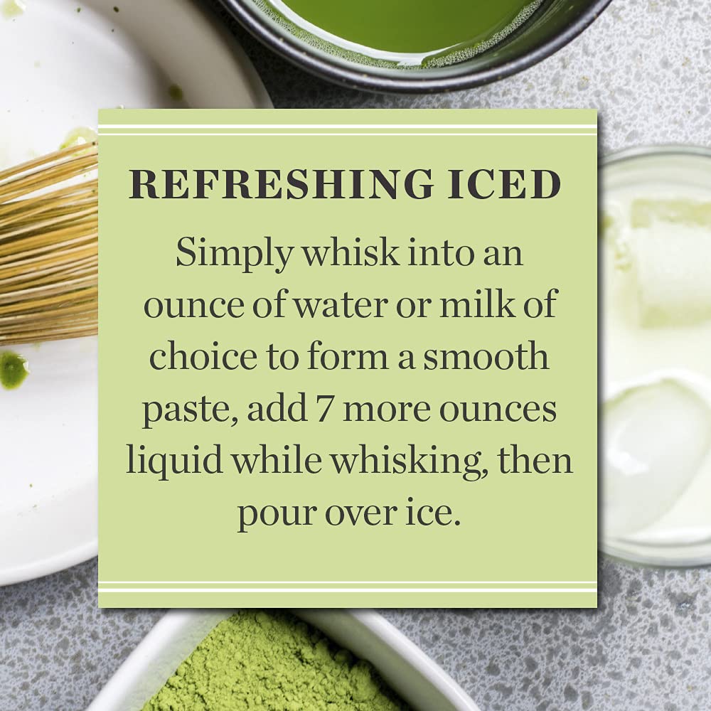 Steeping Suggestion: Whisk our matcha powder and 1 ounce of liquid into smooth paste then add 7 ounces of liquid while whisking to a smooth, frothy texture