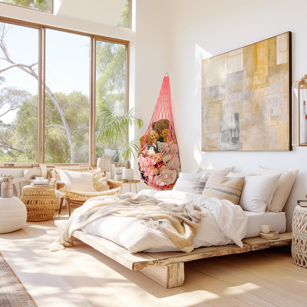 【Installation Efficiency improved by 60%】Say goodbye to corner hanging toy hammocks that require 3 hooks. Just a hook (included) is needed without worrying about leaving too many ugly nail holes in the wall. When suspended from the ceiling, the plushies hammock can rotate 360° to display your plush collection in all directions, making it easy to find any one. The best ideal stuffy animal storage basket over the door , or wall Hanging toy organizers.