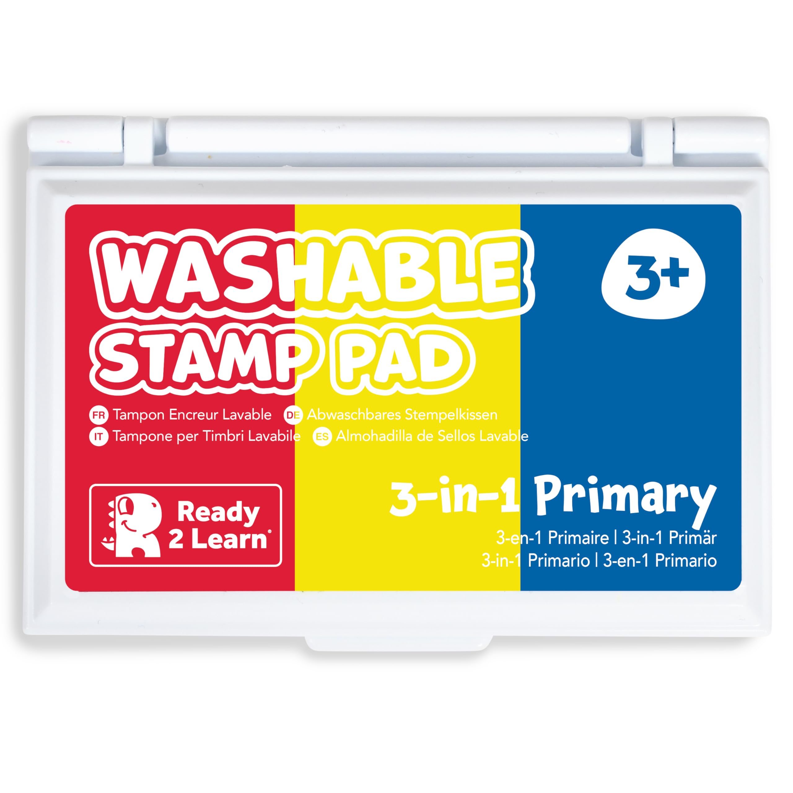 3 COLORS IN 1 INK PAD -- Stamp with red, yellow and blue ink pads all in one! A perfect addition to stamping supplies—create sharp, clear images that wash off most surfaces with soap and water.