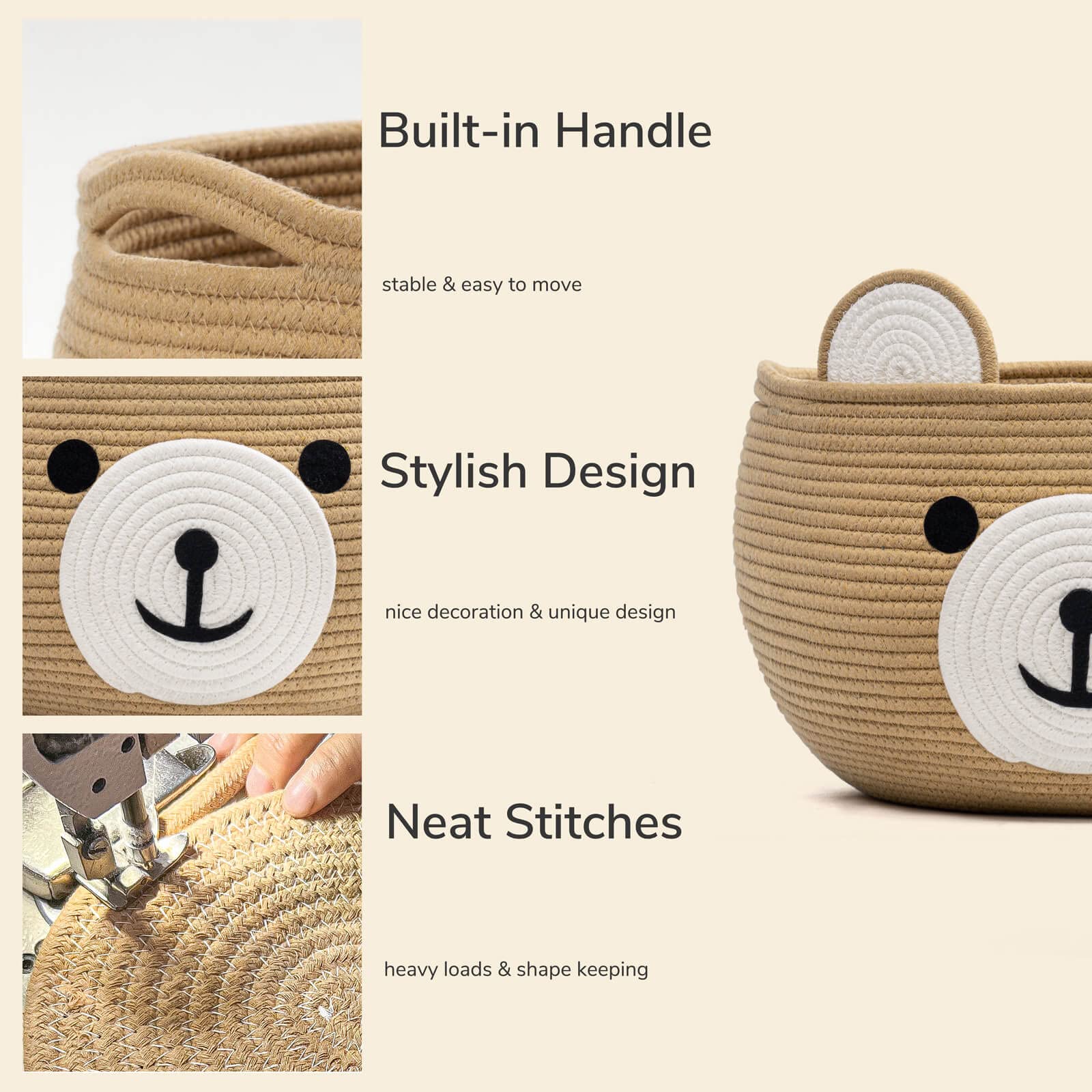 Cute Animal Basket: Made from soft coiled rope, this animal storage bin with a playful bear face, which is popular with many kids and families. This cutebasket can not only adapt to various home styles but also be a very cute decoration in a home
