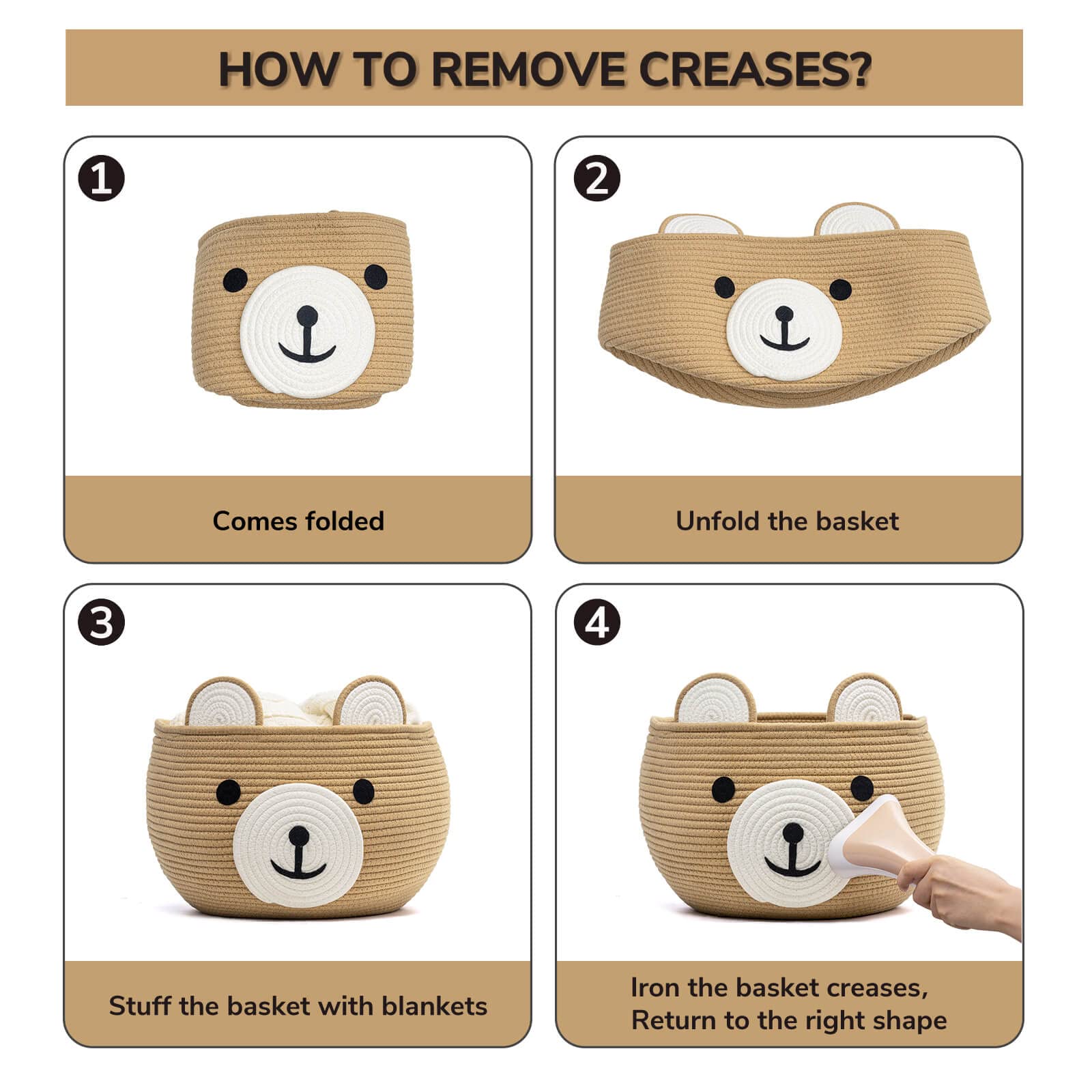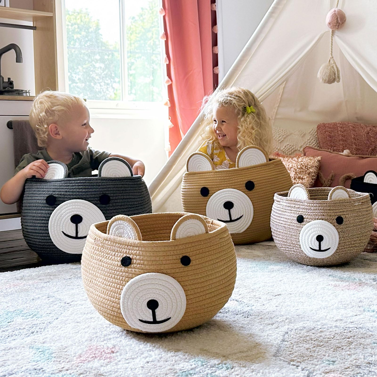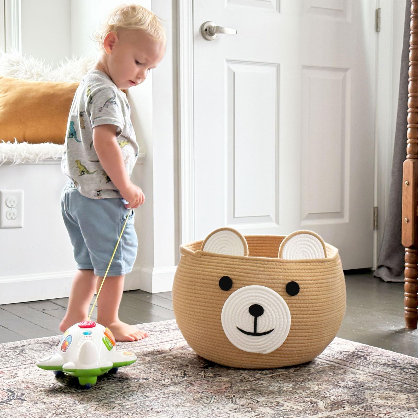 Baby Laundry Basket: The Bear basket is made of cotton rope with a soft touch, which is perfect for home use, especially for toddlers, babies, children, and pets. It's a smart choice for organizing clothes, toys, stuffed animals, blankets, and so on