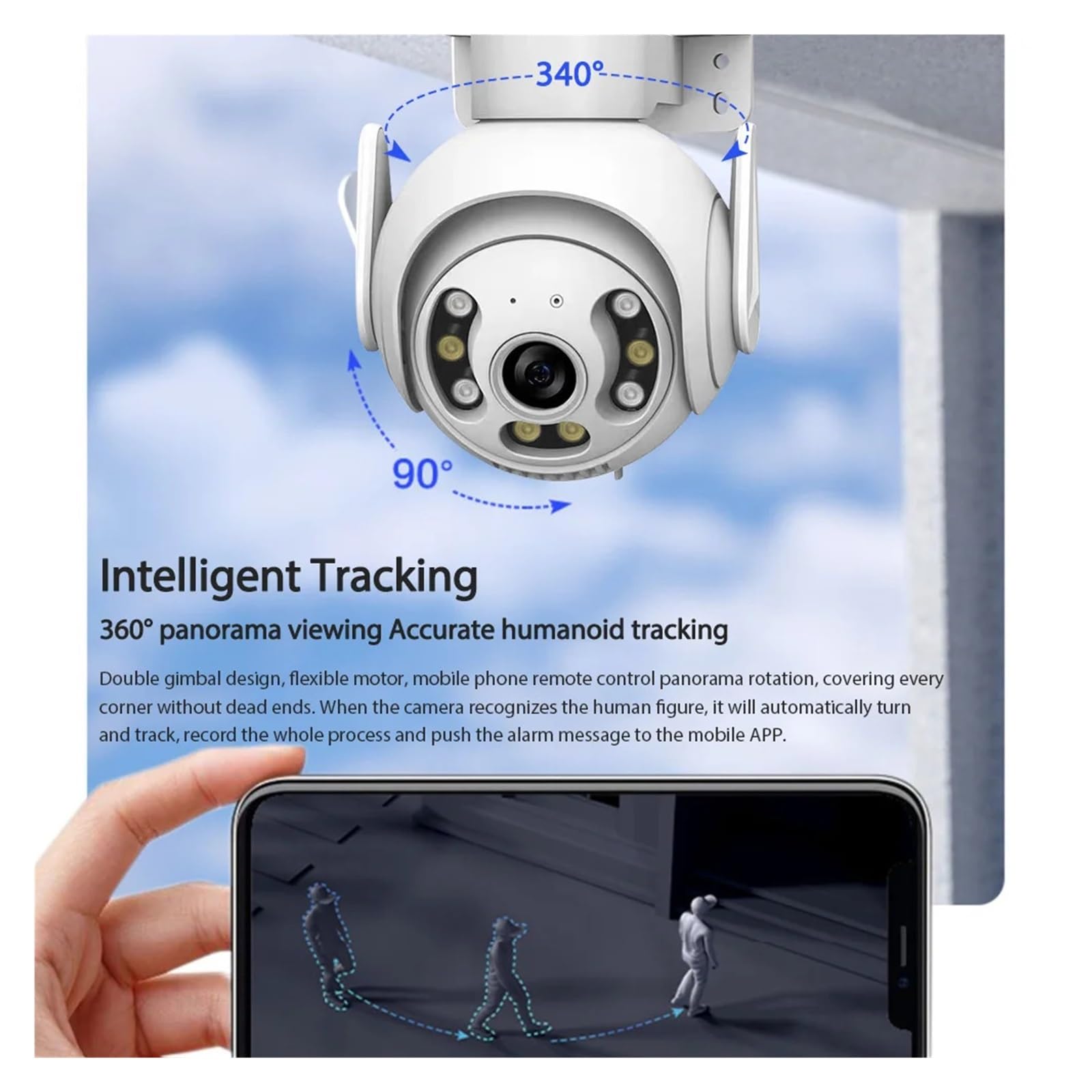 【350° Horizontal Rotation +90° Vertical Rotation】 : Supports 350° horizontal rotation and 90° vertical rotation. Combined with the AI intelligent tracking function, it can automatically lock onto moving targets and achieve large-scale blind-spot-free monitoring.